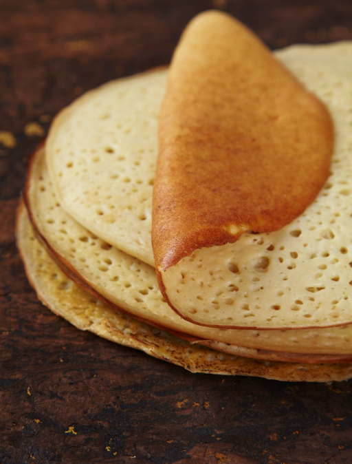 Smooth like a pancake on one side and spongy on the other—fried on only one side—this distinctive bread requires a cold nonstick pan to cook properly. “I often work with two pans, letting one cool while the other is in use,” says Lowy. “But you can also opt to cool down a single pan after each round.”