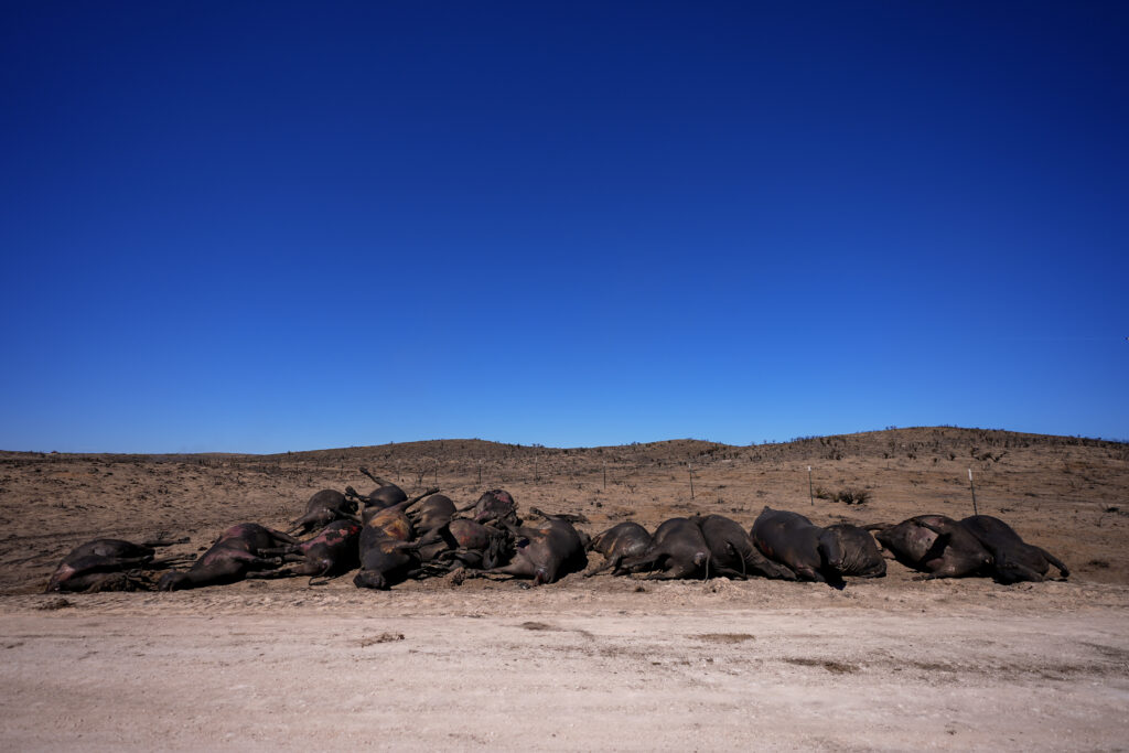 The number of dead cattle was not known, but Miller and local ranchers estimate the total will be in the thousands.