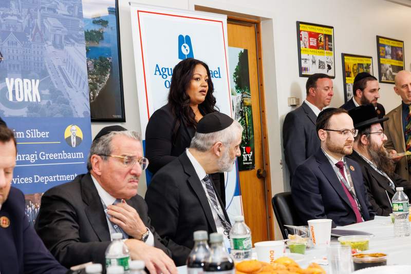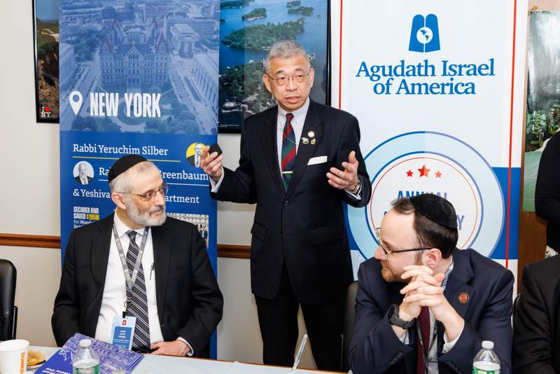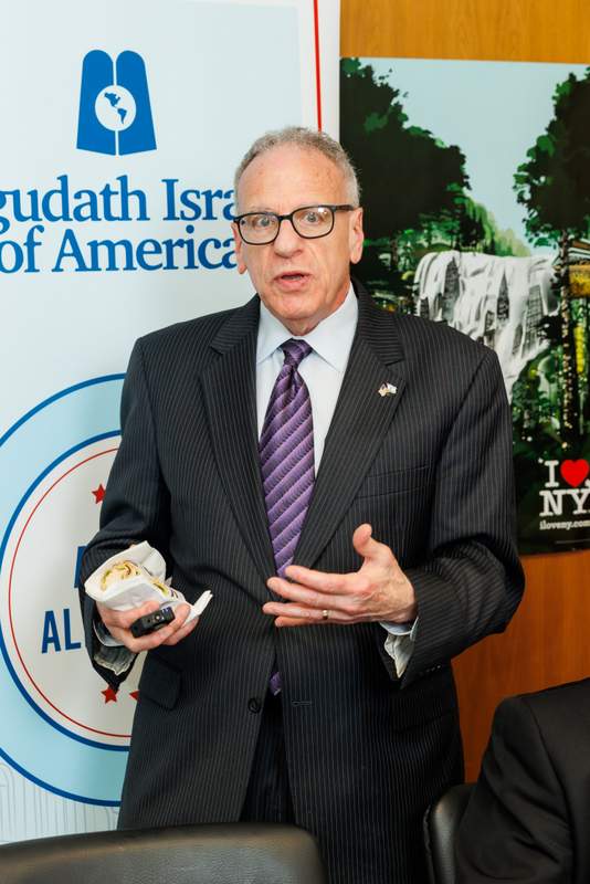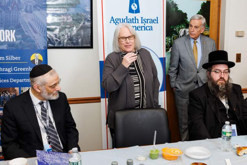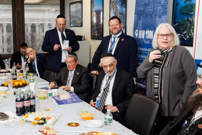 Close to 40 Senators and Assemblymembers joined the delegation for lunch, hosted by Assemblymember David Weprin (D-24). Many of the legislators addressed the delegates, committing to support New York’s Jewish community during this difficult time. Mr. Chaskel Bennett, Agudath Israel board member, introduced Assemblymember Helene Weinstein (D-41), who just announced her intention to retire after representing the 41st district for over 40 years: “I have had the honor of working closely with Assemblywoman Weinstein on behalf of our growing community for well over twenty-five years. Few, if any, have served their constituents with more respect and effectiveness. Assemblywomen Weinstein has been and continues to be the benchmark for what an elected official should have; integrity, sensitivity, honesty, and humility.”