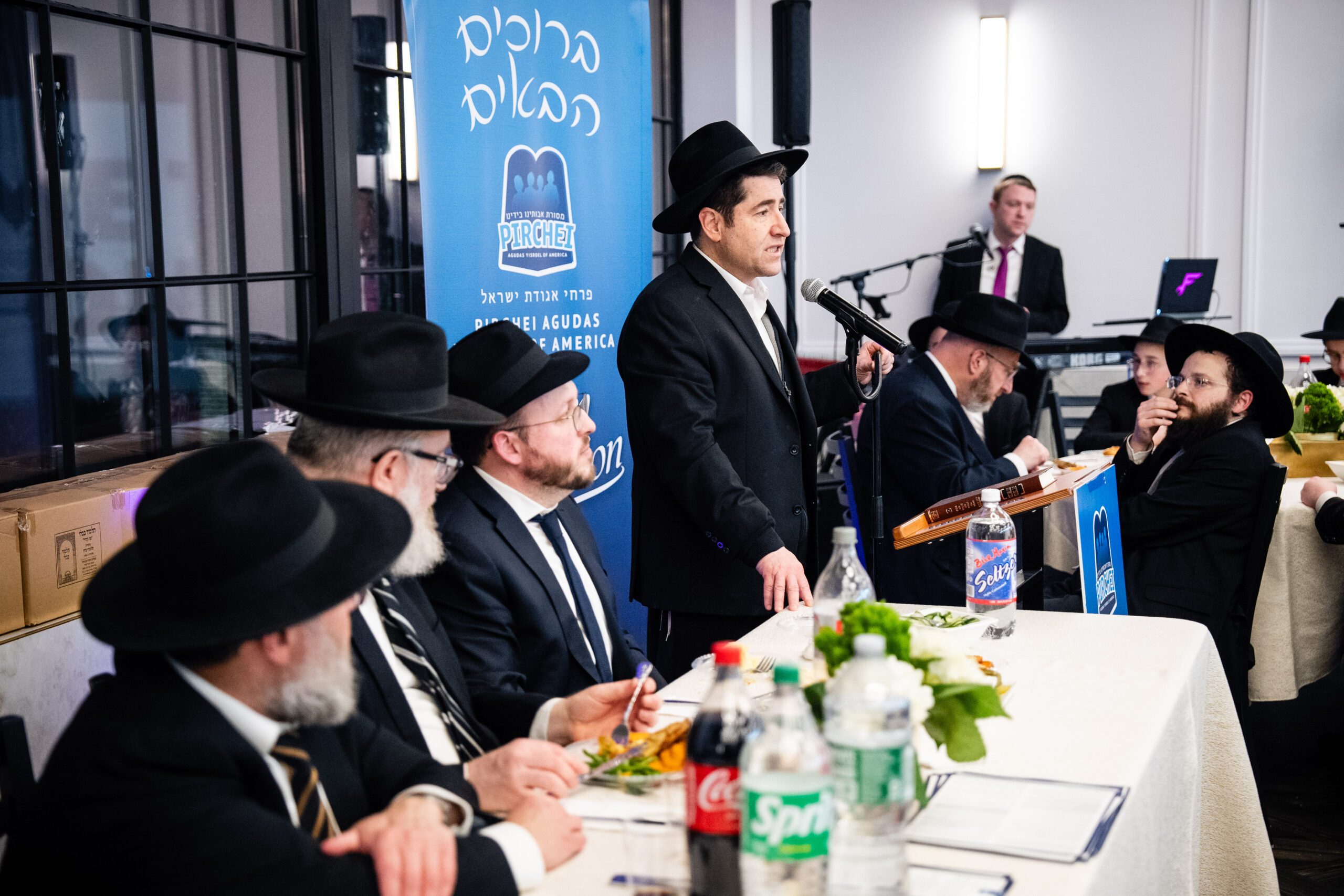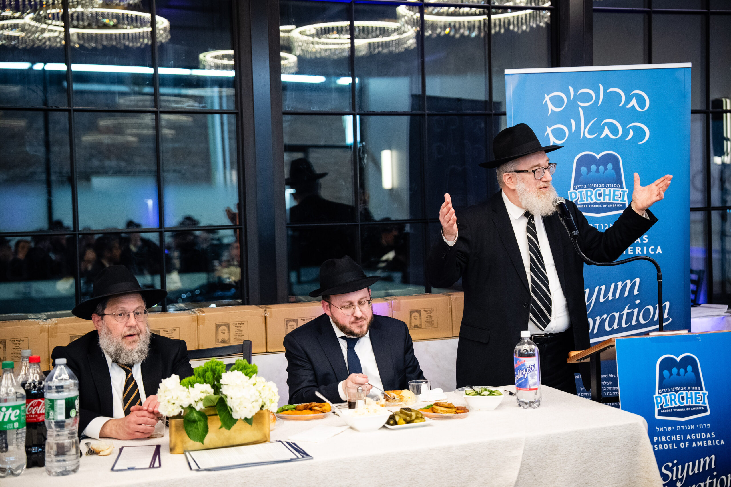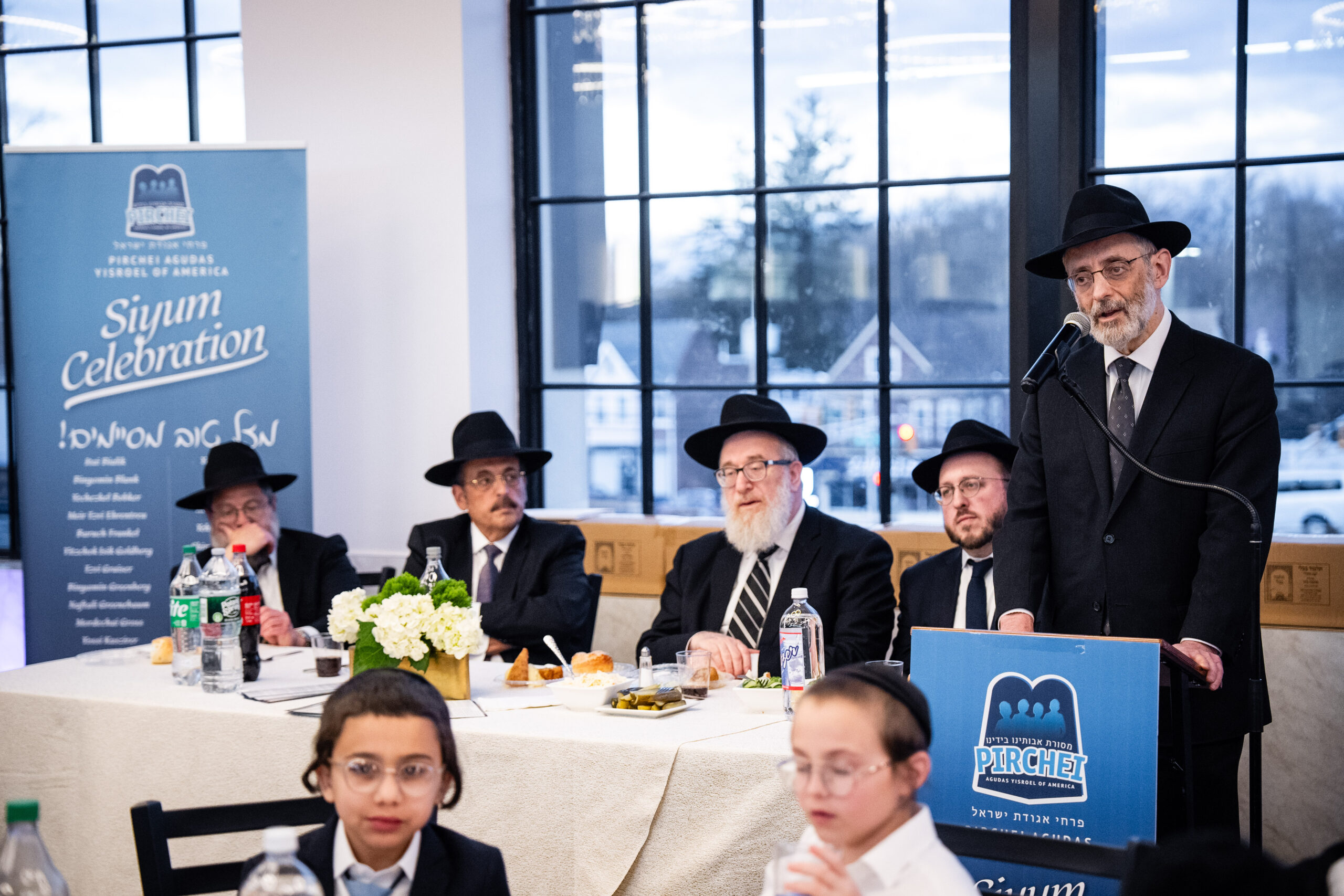Rabbi Yehuda Kohn, national director of Pirchei Agudas Yisroel, opened the evening with remarks and stories of the importance of limud mishnayos, and was followed by Rabbi Chaim Dovid Zwiebel, executive vice president of Agudas Yisroel of America. Rabbi Zwiebel praised the mesaymim, explaining the significance of their accomplishments specifically in the current difficult time.