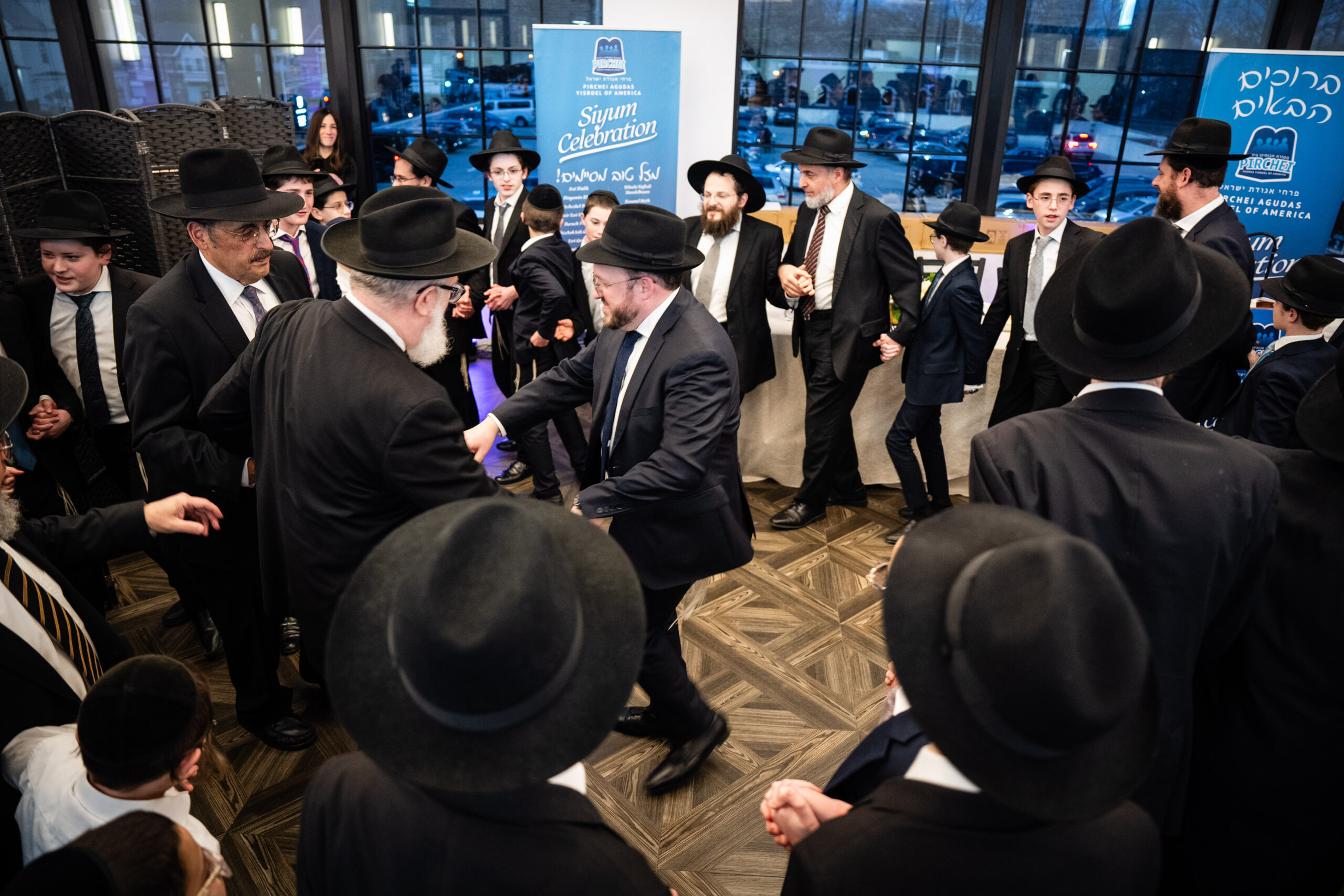 A number of the mesaymim were called up to read the last mishnah and to recite the hadran and Mr. Abe Eisner led the kaddish, followed by spirited dancing in honor of the siyum.