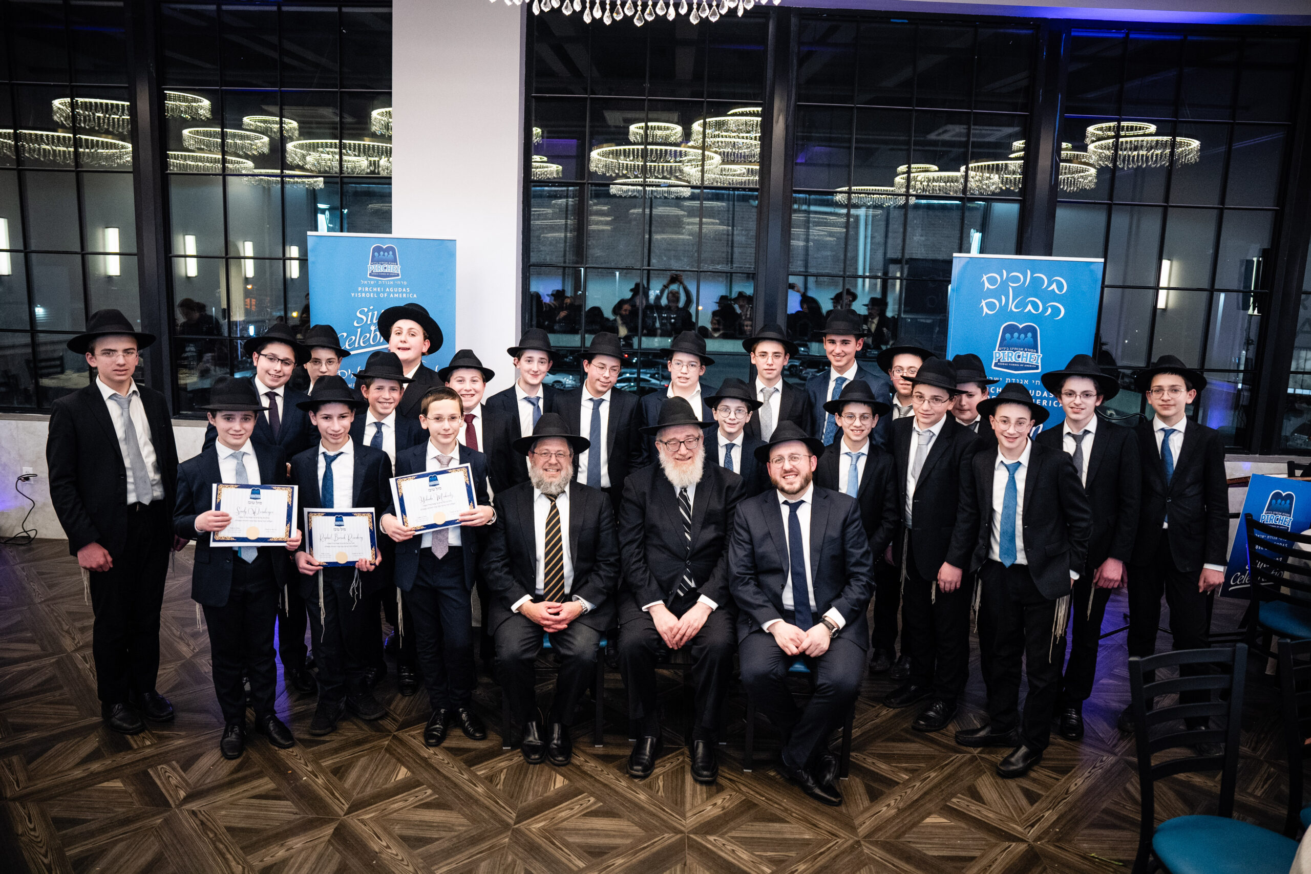 The simchah and kavod haTorah was palpable as each boy then received a certificate of recognition and beautiful set of Shas in honor of his achievement.