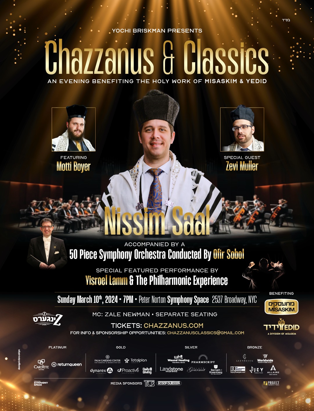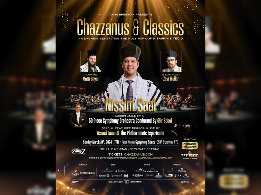 The event, presented by Yochi Briskman, will feature the highly-sought-after Chazzan Nissim Saal, along with Chazzan Motti Boyer and Chazzan Zevi Muller.