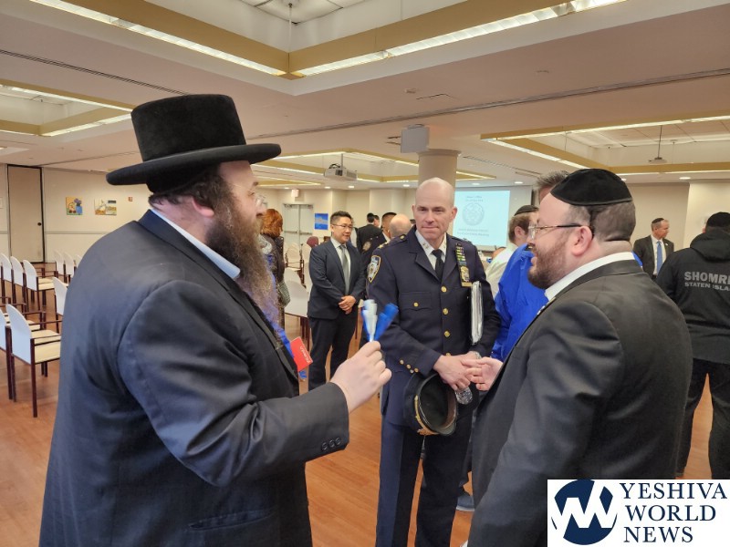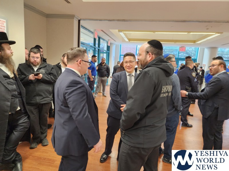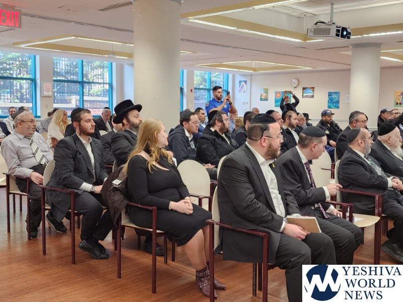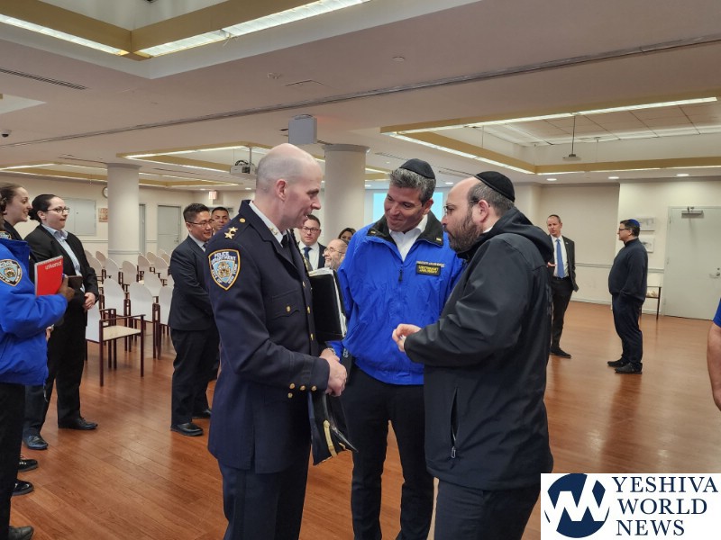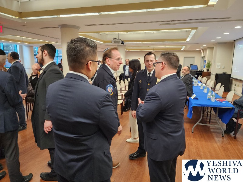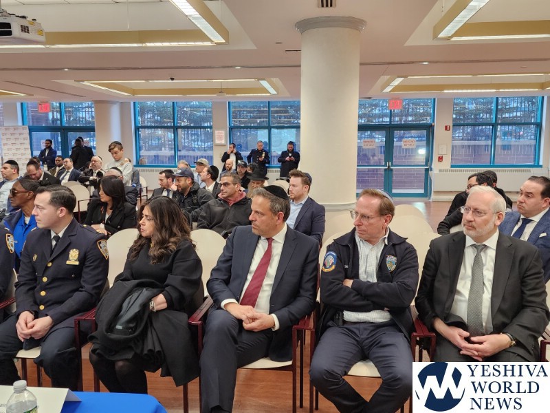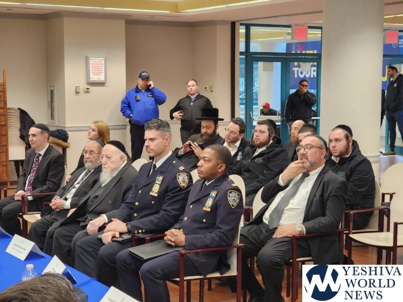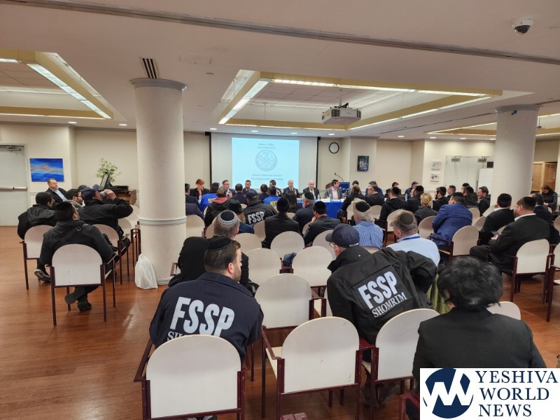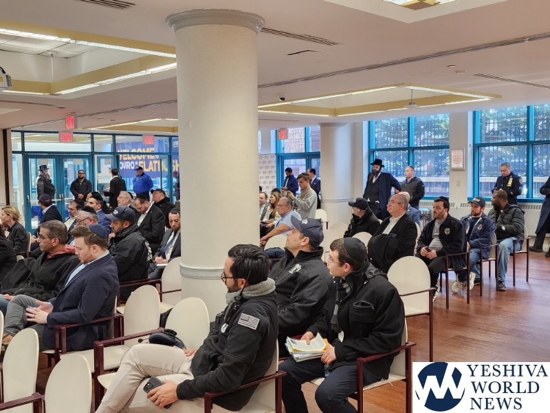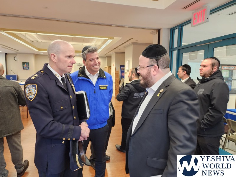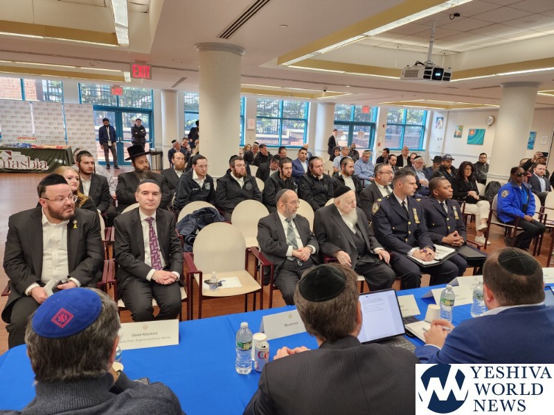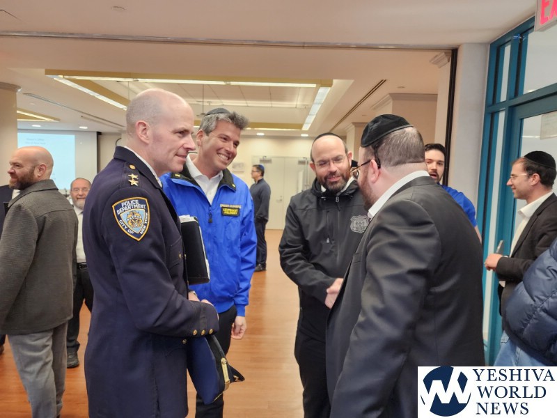 Coordinators from from Flatbush Shomrim Bob Moskovitz and Tzvi Weil, as well as coordinators from Boro Park Shomrim, were also present. NYPD Clergy Liaison Yehuda Eckstein, Councilman Kalman Yeger, and many others were in attendance. The meeting was open to the entire community.