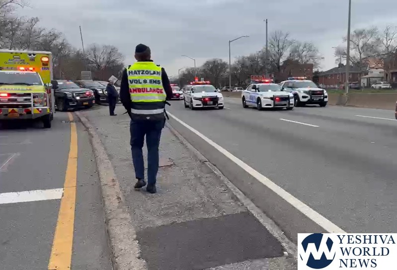 The Hatzalah members gathered on Tuesday afternoon on the Long Island Expressway near Main Street as the procession passed by.