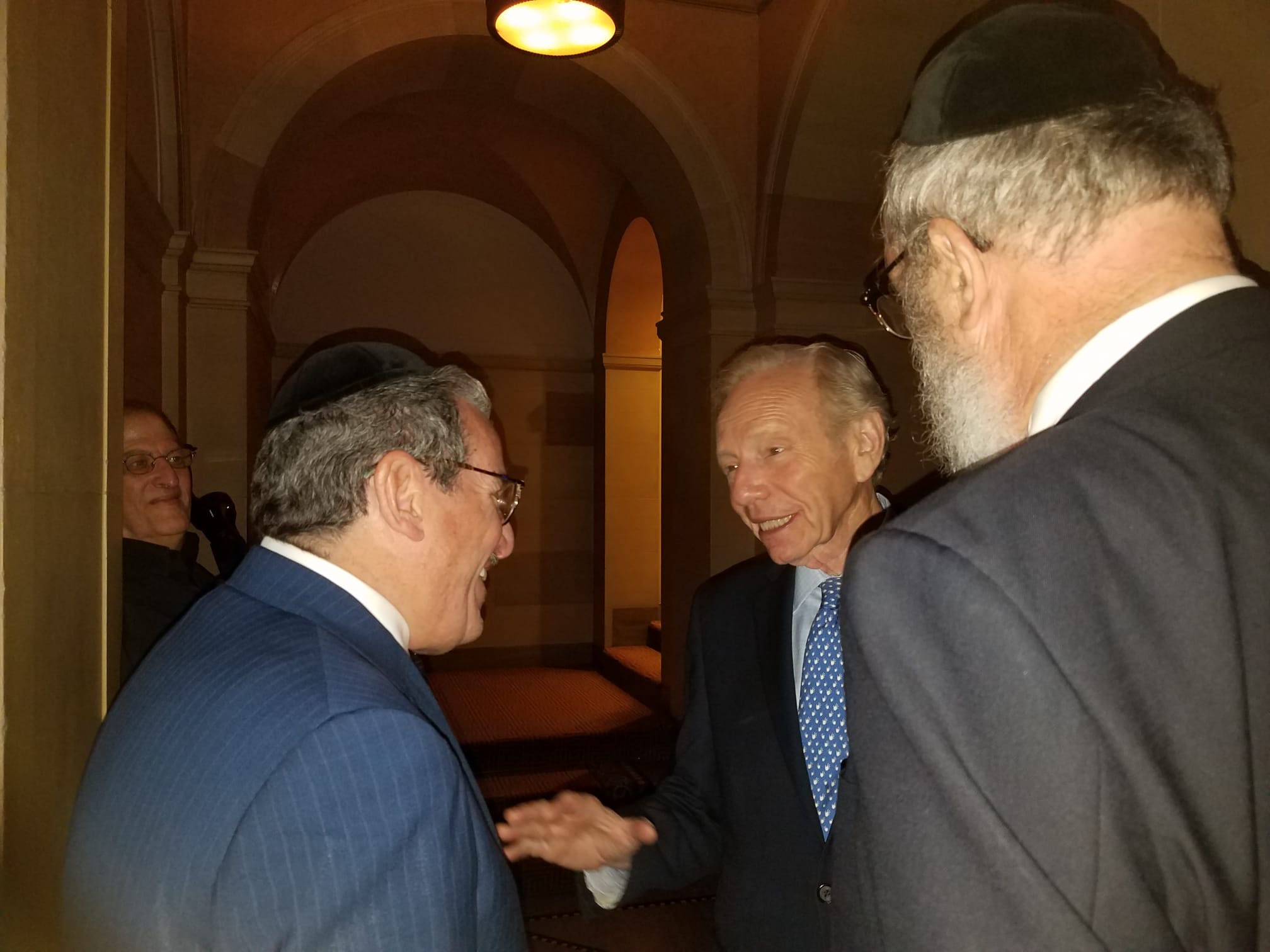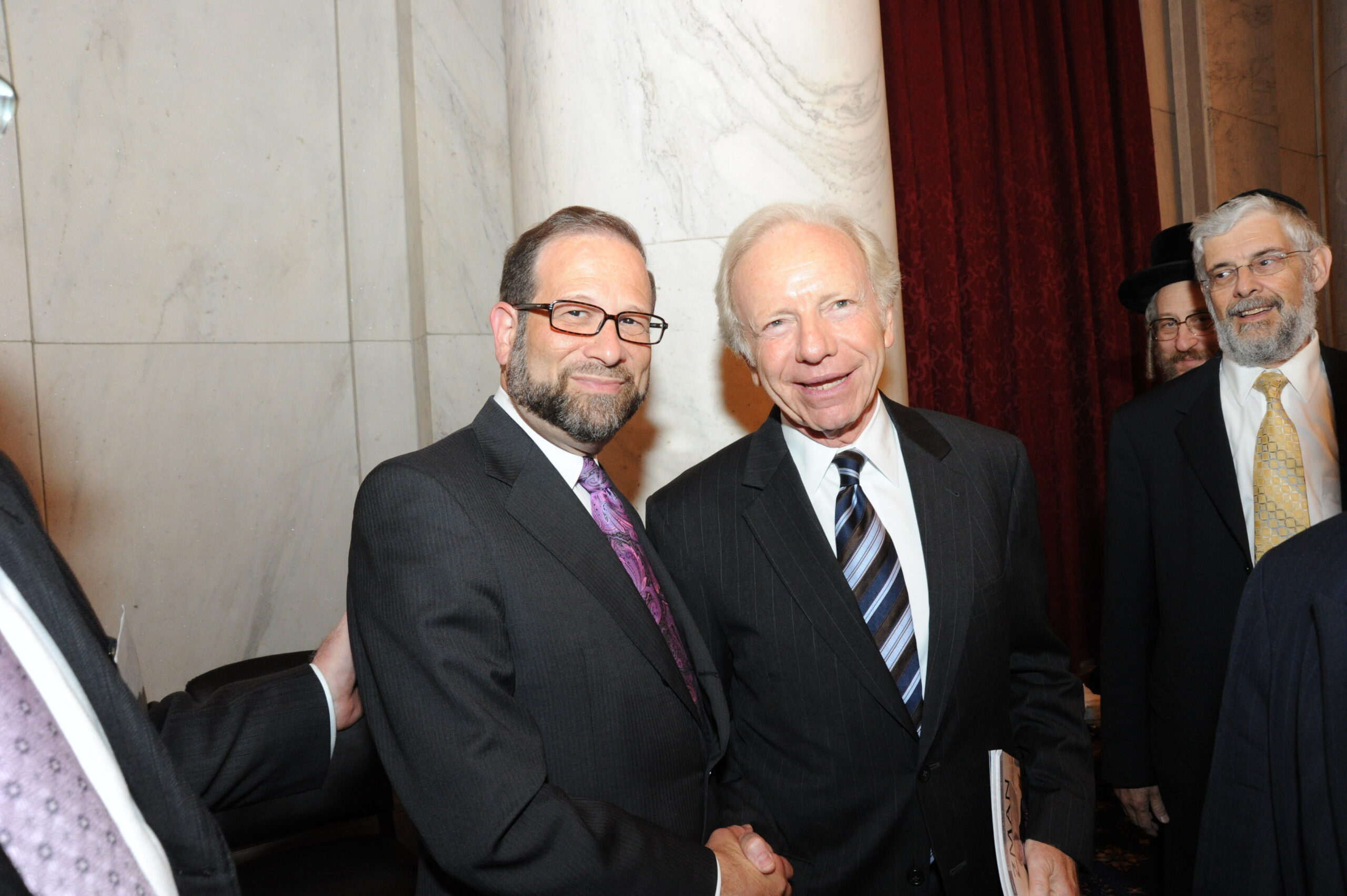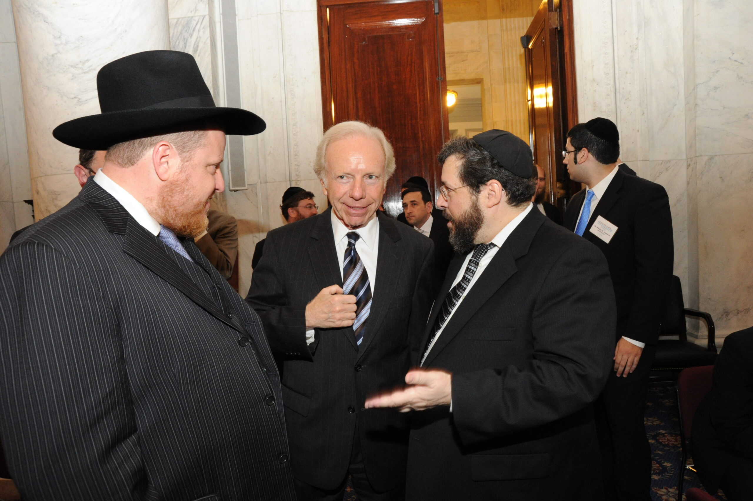 Senator Lieberman was also closely involved with Orthodox Jewish leaders, such as Rabbi Moshe Sherer, legendary president of Agudath Israel of America, and Rabbi Herman Neuberger, the venerable late president of Ner Israel Rabbinical College. The senator referred to them as “tremendous representatives of Torah Jewry” who became his “great friends and advisors.”