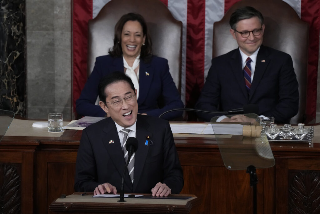 Japanese Prime Minister Fumio Kishida addressed U.S. lawmakers at the Capitol on Thursday, urging them to consider the importance of global commitments at a time of tension in the Asia-Pacific and deep skepticism in Congress about U.S. involvement abroad.