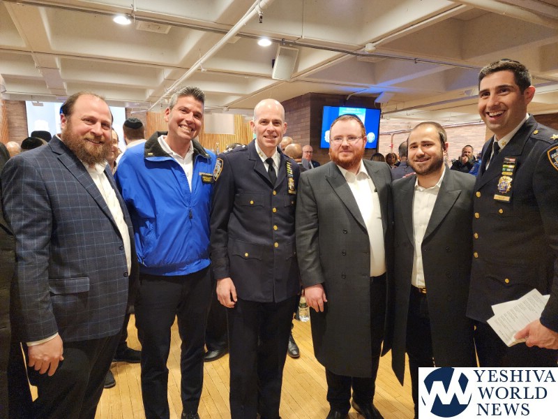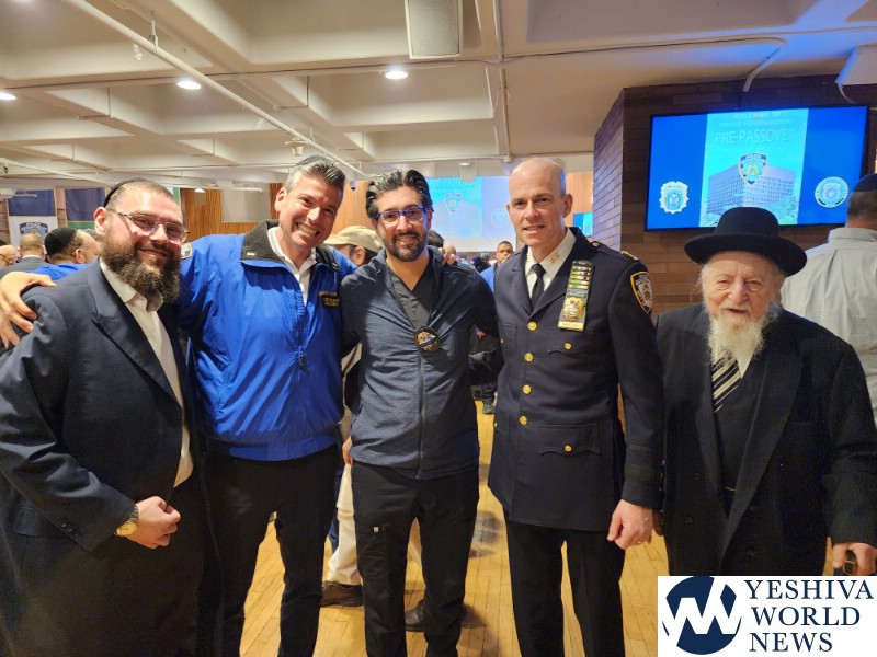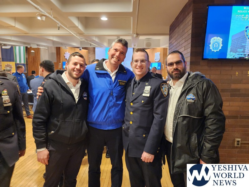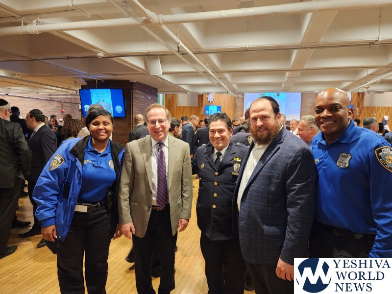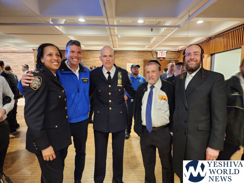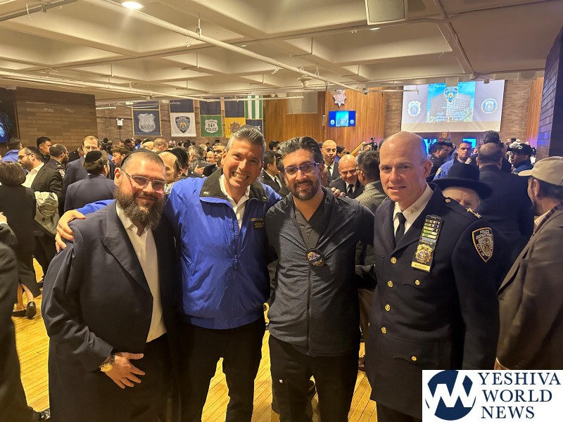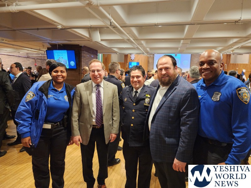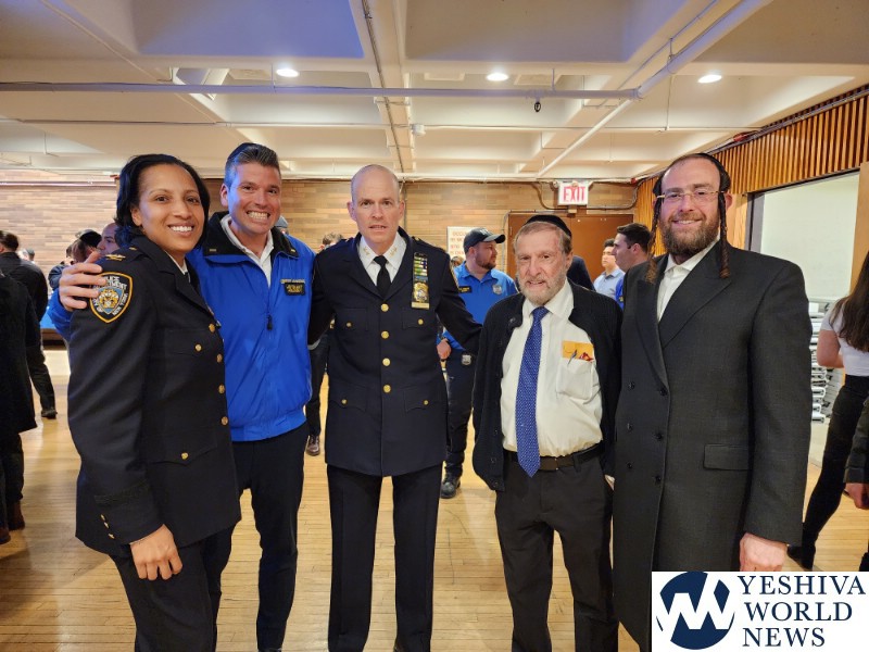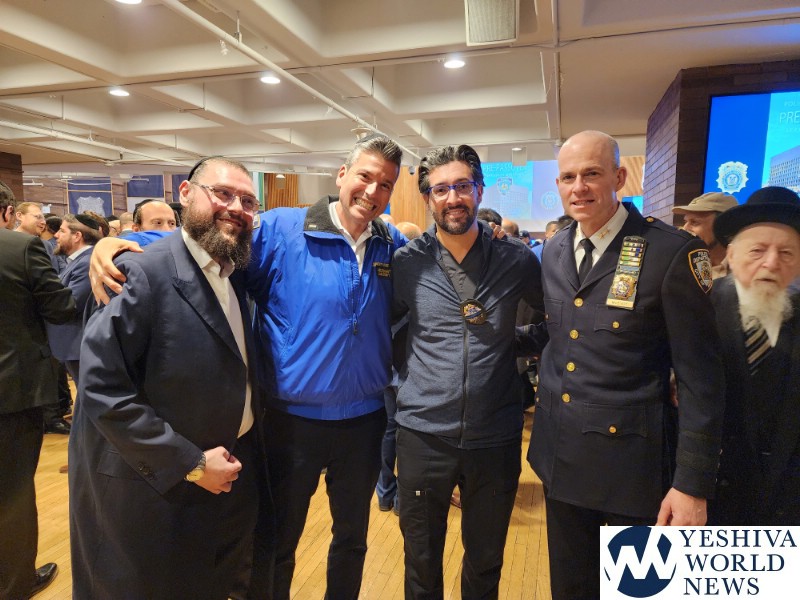 Senior Advisor to Mayor Eric Adams Joel Eisdorfer, Mayor’s CAU Commissioner Fred Kreizman, Flatbush Hatzalah Coordinator Moshe Wulliger and Member Avrumi Brown, Flatbush Shomrim Executive Coordinator Bob Moskovitz, Far Rockaway Shomrim Coordinator Sholem Klein, Williamsburg Shomrim Coordinators Yanky Itzkowitz & Asher Markowtiz, Crown Heights Shomrim Coordinators Gadi Hershkop & Mendy Hershkop and an array of other Shomrim and Hatzalah leaders were in attendance.