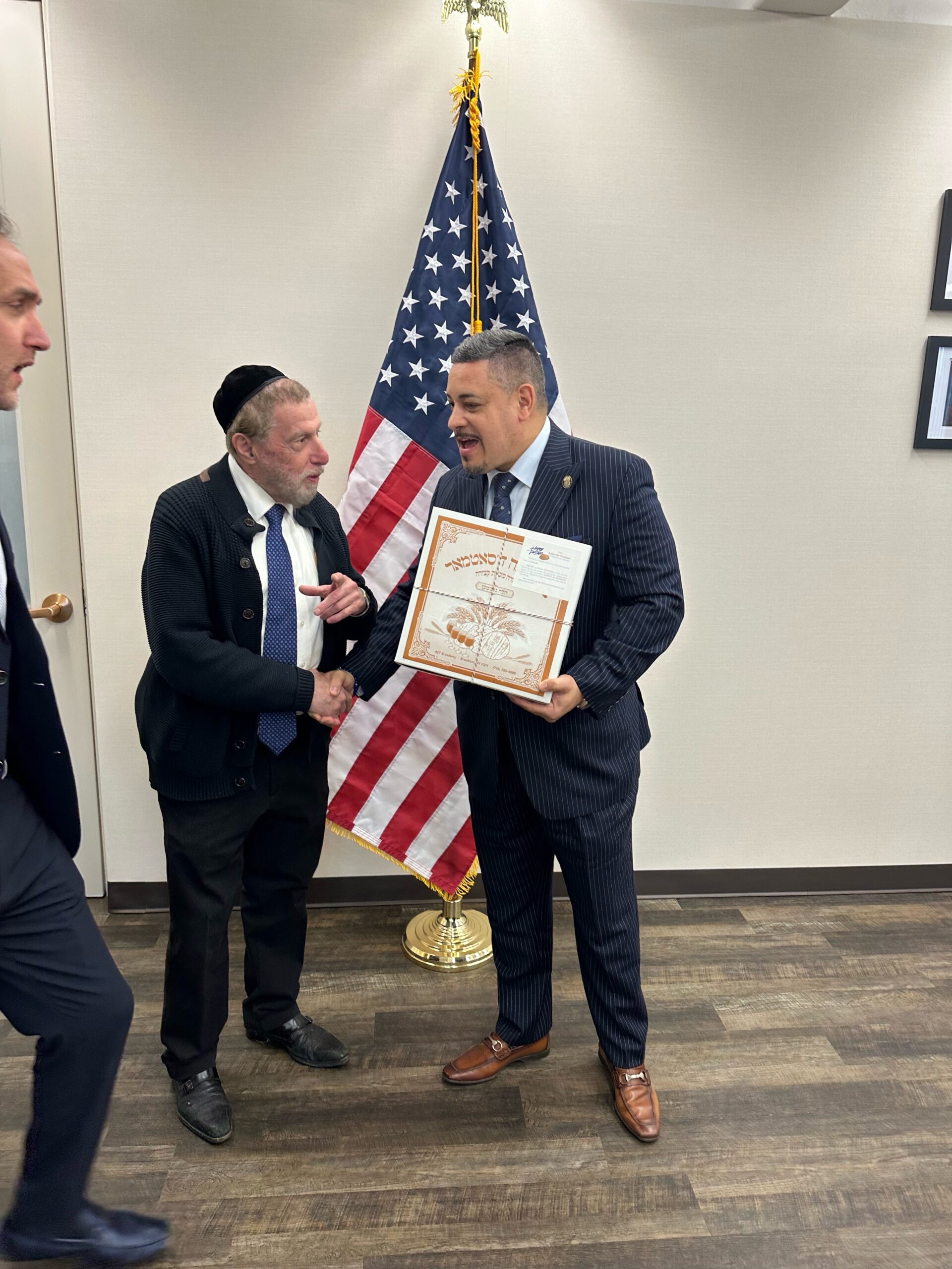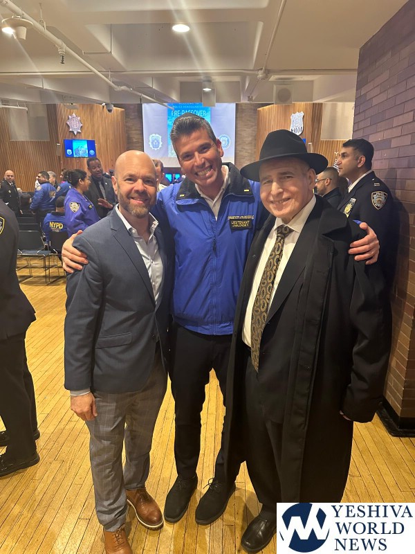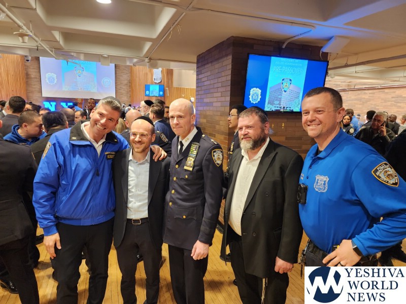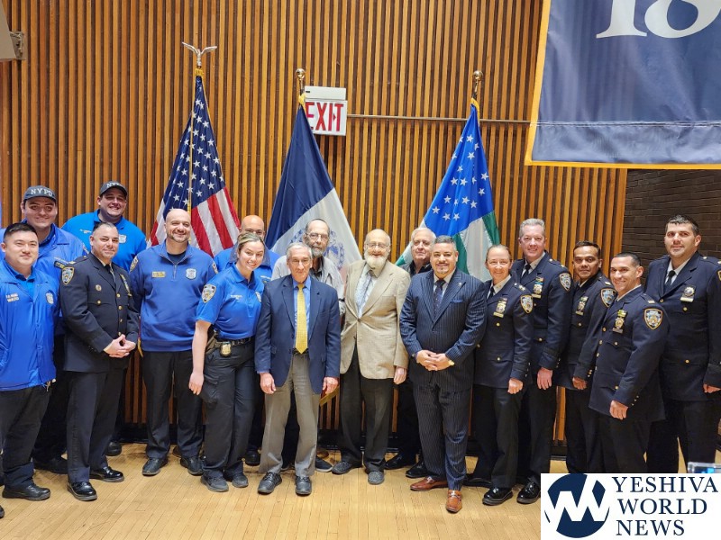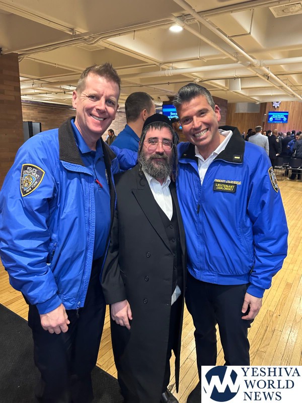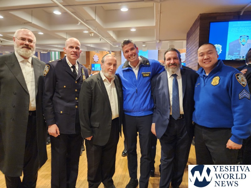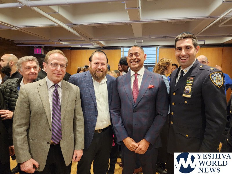 Senior Advisor to Mayor Eric Adams Joel Eisdorfer, Mayor’s CAU Commissioner Fred Kreizman, Flatbush Hatzalah Coordinator Moshe Wulliger and Member Avrumi Brown, Flatbush Shomrim Executive Coordinator Bob Moskovitz, Far Rockaway Shomrim Coordinator Sholem Klein, Williamsburg Shomrim Coordinators Yanky Itzkowitz & Asher Markowtiz, Crown Heights Shomrim Coordinators Gadi Hershkop & Mendy Hershkop and an array of other Shomrim and Hatzalah leaders were in attendance.