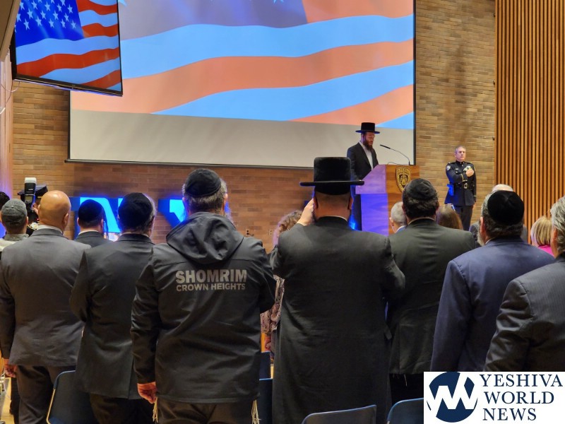 The NYPD Honor Guard presented the colors after which International Jewish Music Recording Artist Beri Weber eloquently sang the National Anthem for the crowd of over 400 people.