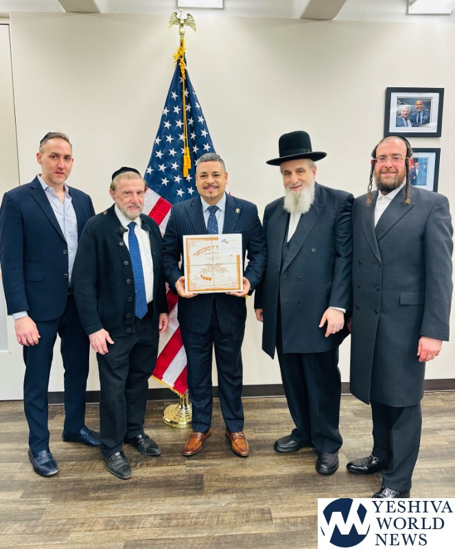 Kalman Yeger, Inna Vernikov & Lynn Schulman & City Council Jewish Liaison Pesach Osina.