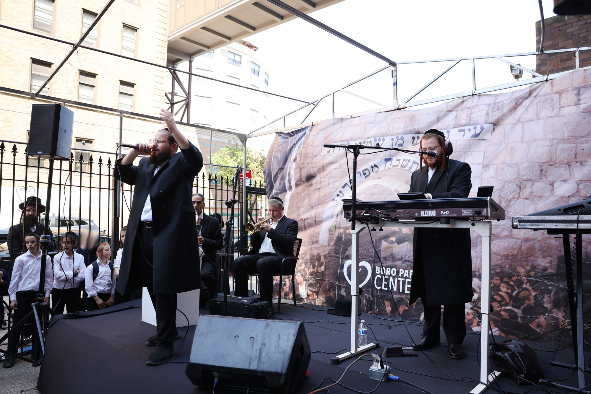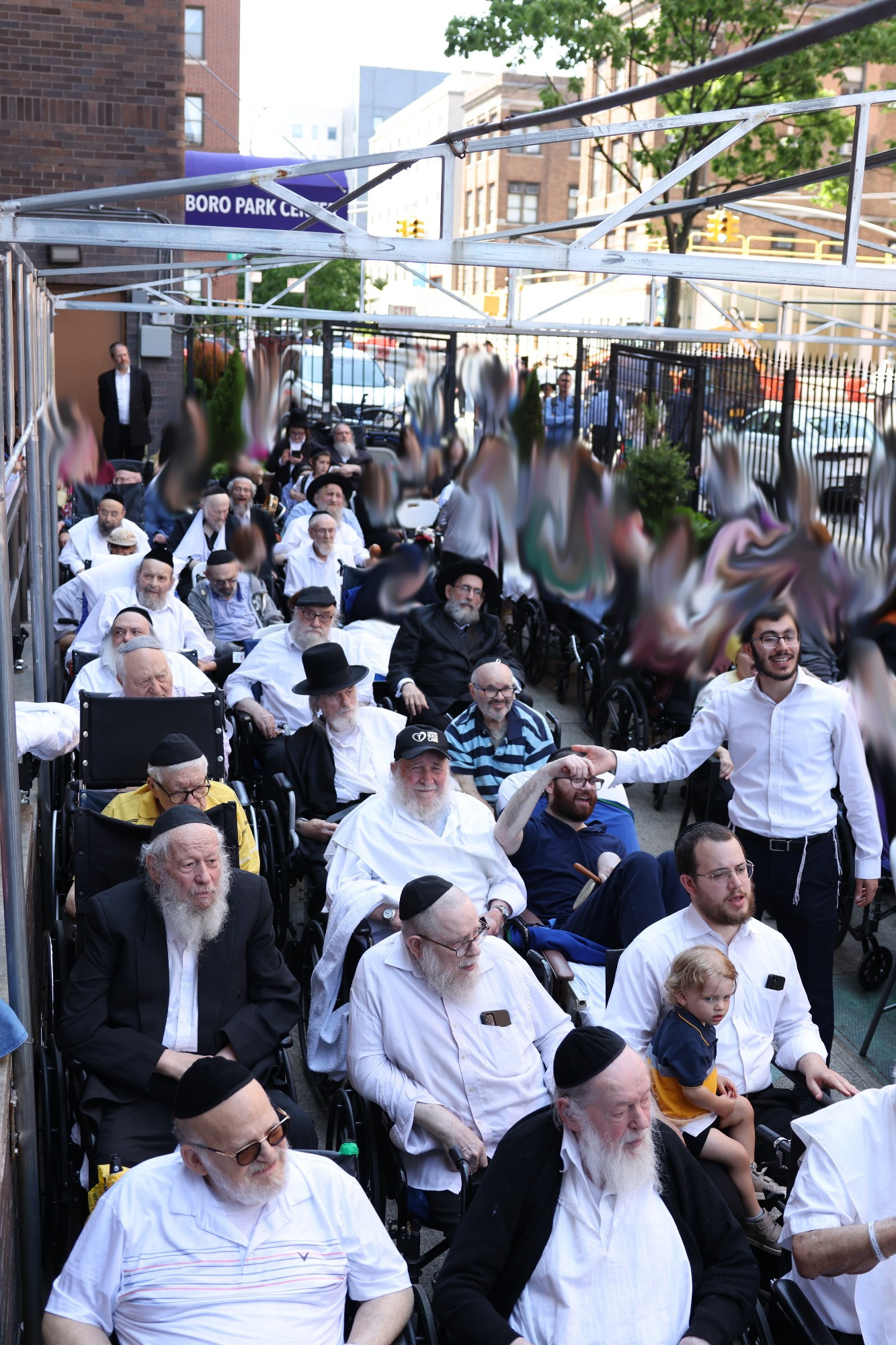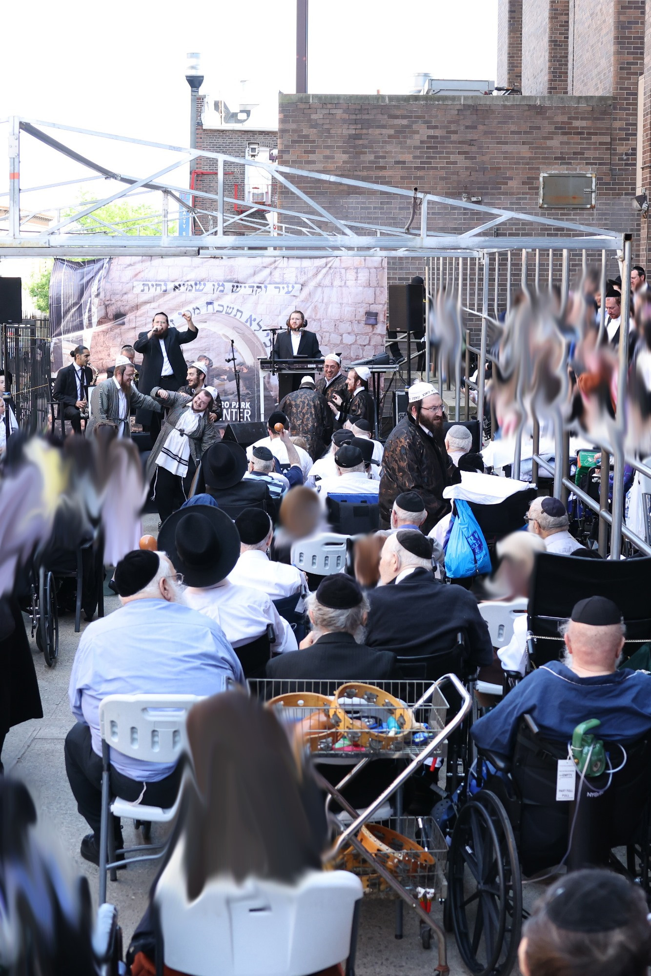 Lag Baomer at the Boro Park Center is already a well-known special event. Every year the BPC residents and their family members get a full day of festivities in honor of Lag Baomer, and this year was no exception. The Berko brothers entertained the crowd of close to 200 residents and family members with lively singing and dancing. Fire jugglers, Tantzers volunteers and other entertainers delighted the crowd with their energy and tricks.