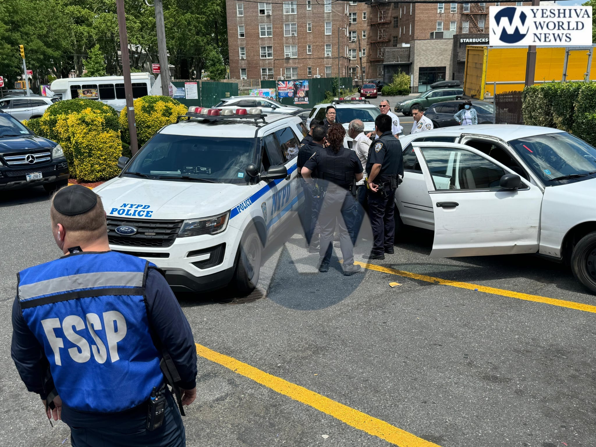 Shomrim from Flatbush, Crown Heights and Boro Park mounted an immediate, all-out search for the suspect. The suspect vehicle was quickly located by a Flatbush Shomrim volunteer at Flatbush Avenue and Avenue L. The NYPD was called, and the suspect was taken into custody.