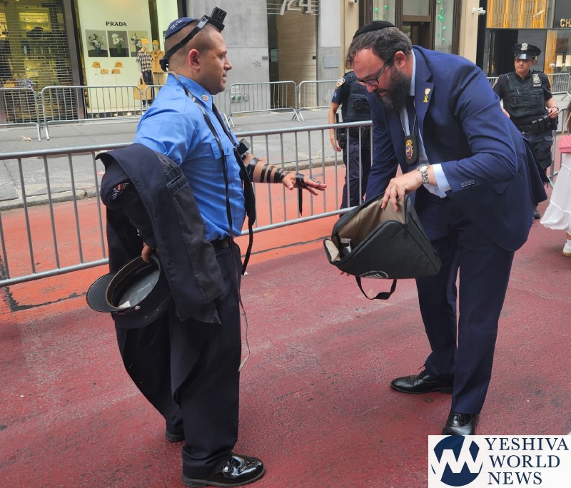 Chabad’s Rabbi Mendy Carlebach on Sunday attended the Israel Day Parade in New York City, not so much to march in the annual procession, but to share the mitzvos with Jews in attendance who may not have the chance to do them otherwise.