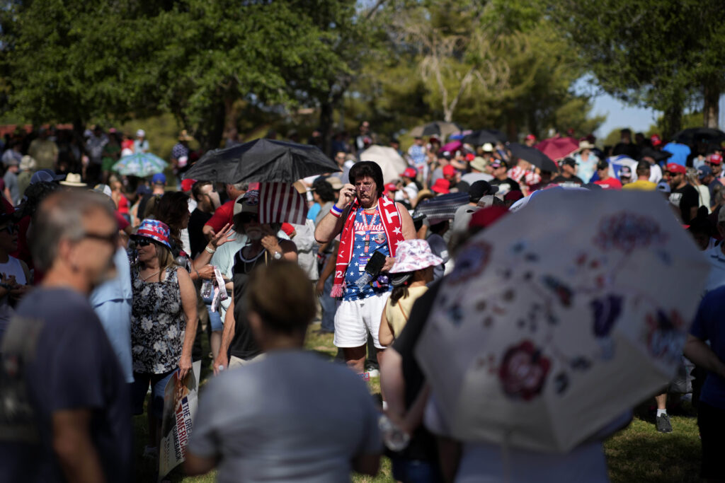 Former President Donald Trump ‘s campaign hired extra medics, loading up on fans and water bottles and allowed supporters to carry umbrellas to an outdoor rally Sunday in Las Vegas, where temperatures are expected to exceed 100 degrees Fahrenheit (37.8 degrees Celsius).