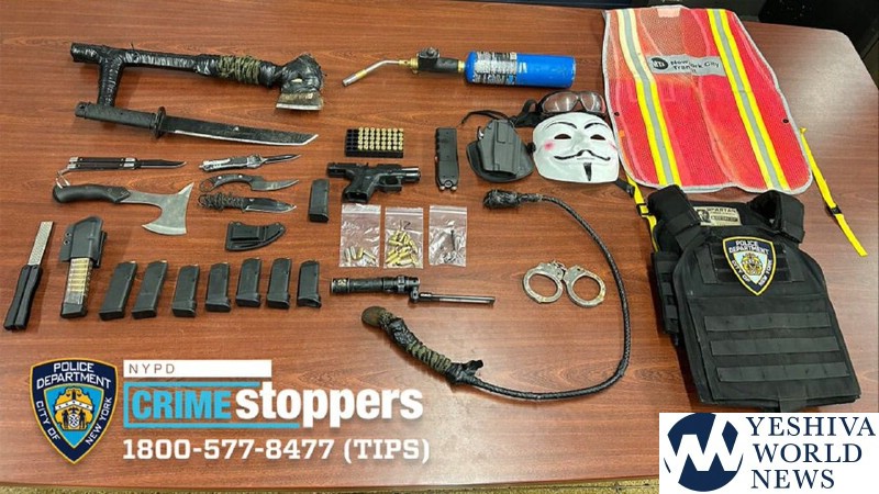 Police also discovered an orange MTA vest and a Guy Fawkes “V for Vendetta” mask, which has been associated with anarchist and extremist groups. Sanson, who allegedly expressed extremist views online, was taken into custody and charged with multiple weapons offenses.