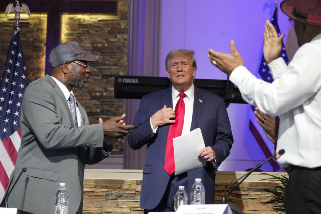 Trump argues he can pull in more Black voters due to his economic and border security message, and that his felony indictments make him more relatable. At the church on Saturday afternoon, he repeatedly vowed to “bring back the auto industry” while also noting, “The crime is most rampant right here and African American communities.”