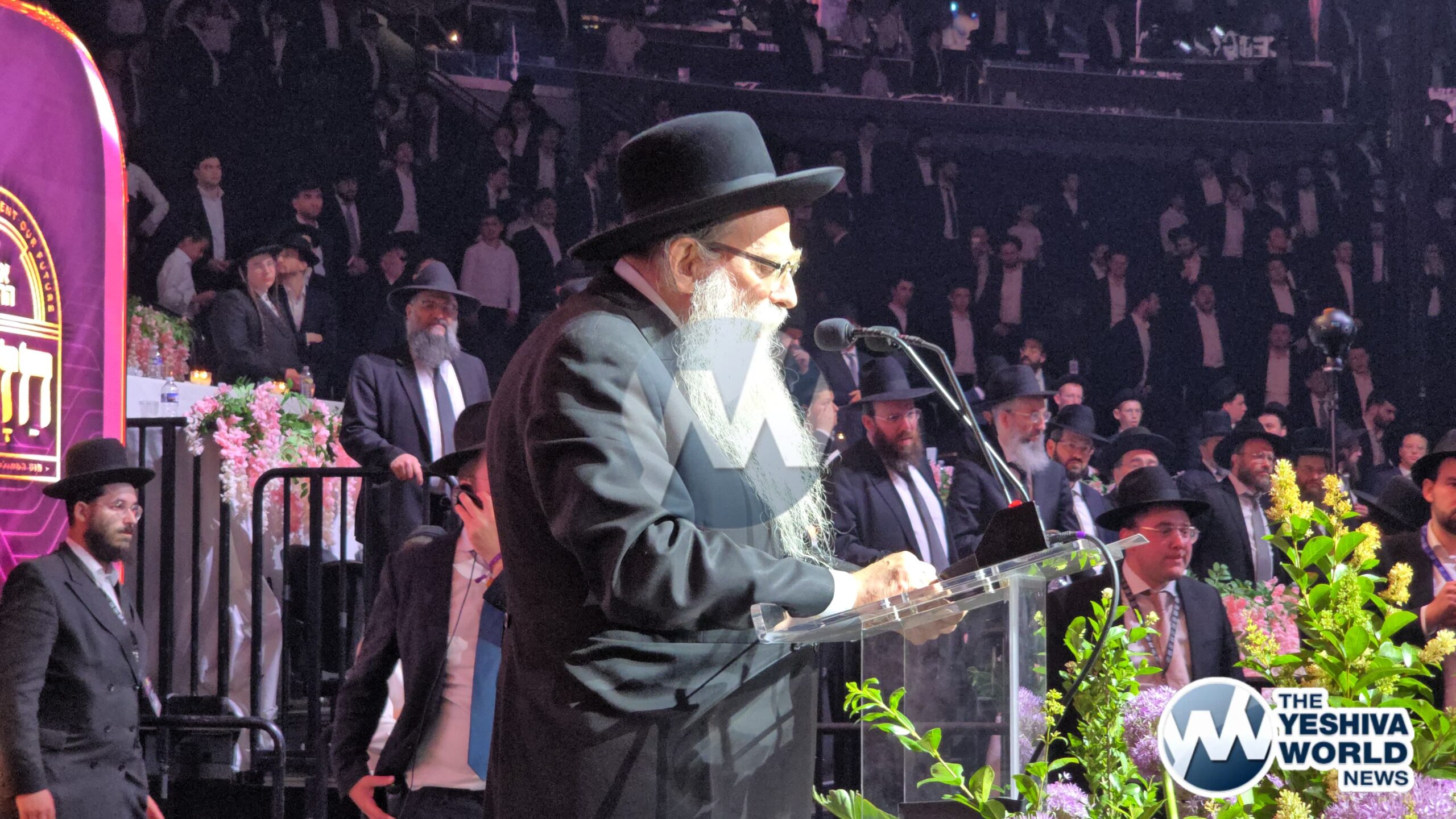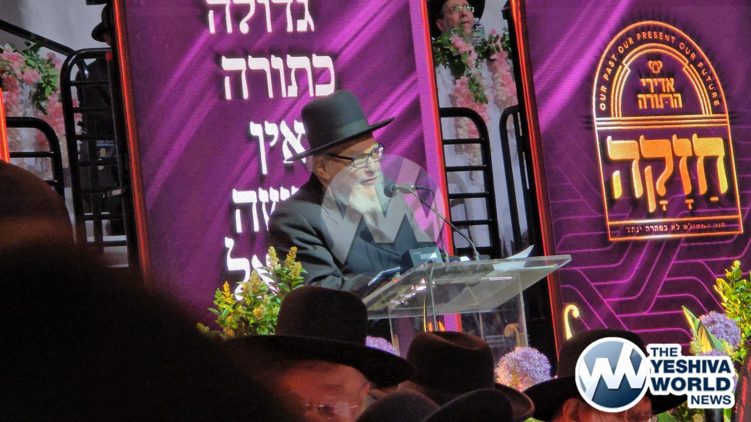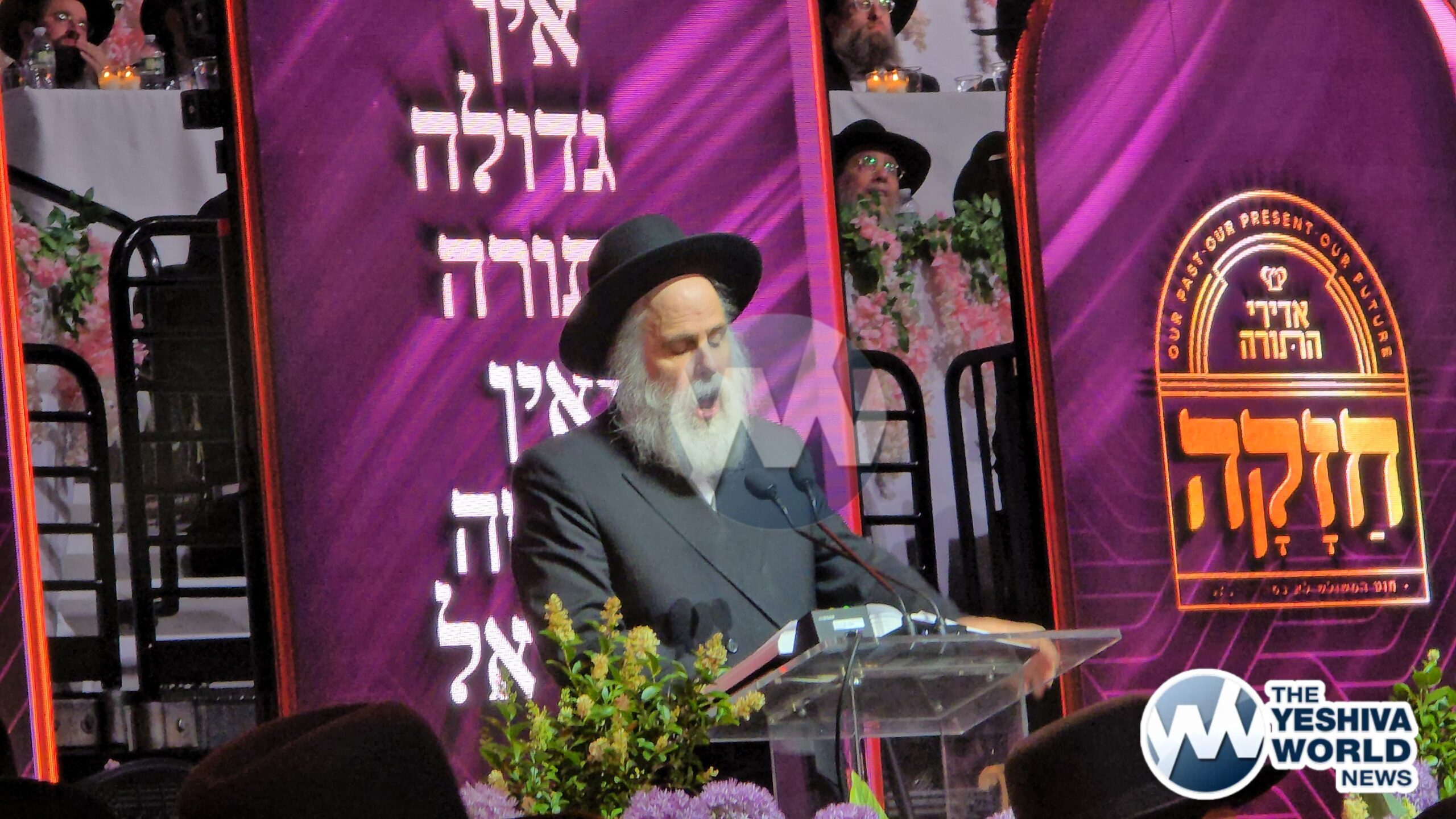 Harav Shmuel Kamenetzky shlit”a enters the Adirei Hatorah maamad and is greeted by a jubilant crowd, marking his first appearance at a public event since suffering a stroke just over a year ago.