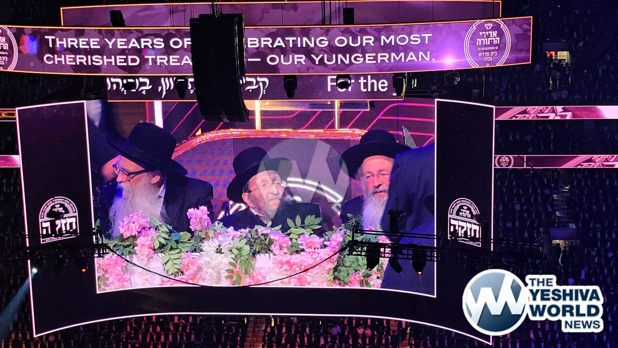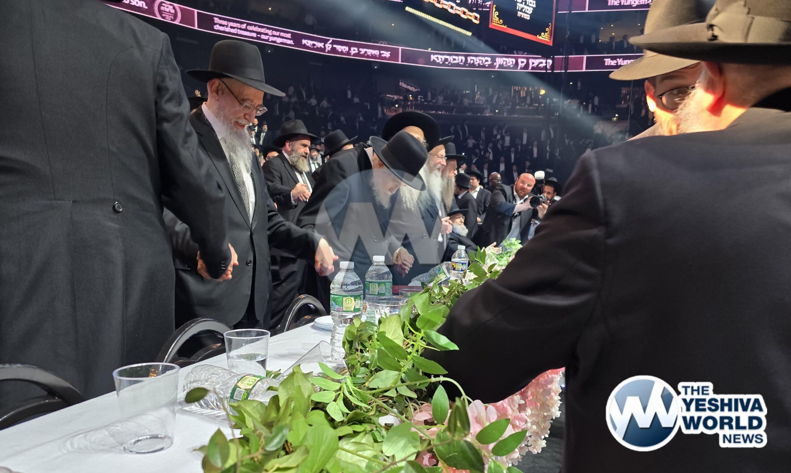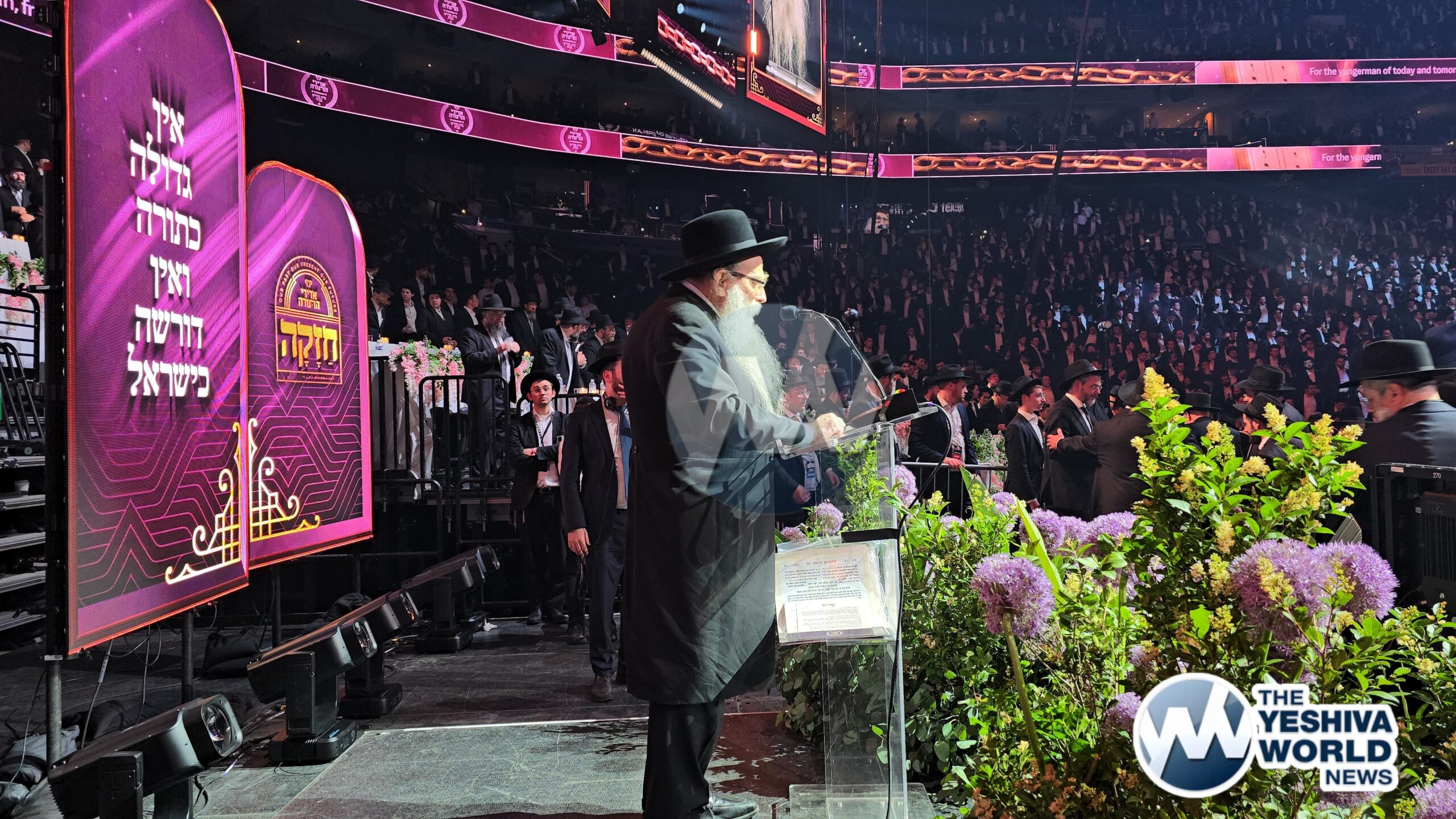 Harav Shmuel Kamenetzky shlit”a enters the Adirei Hatorah maamad and is greeted by a jubilant crowd, marking his first appearance at a public event since suffering a stroke just over a year ago.