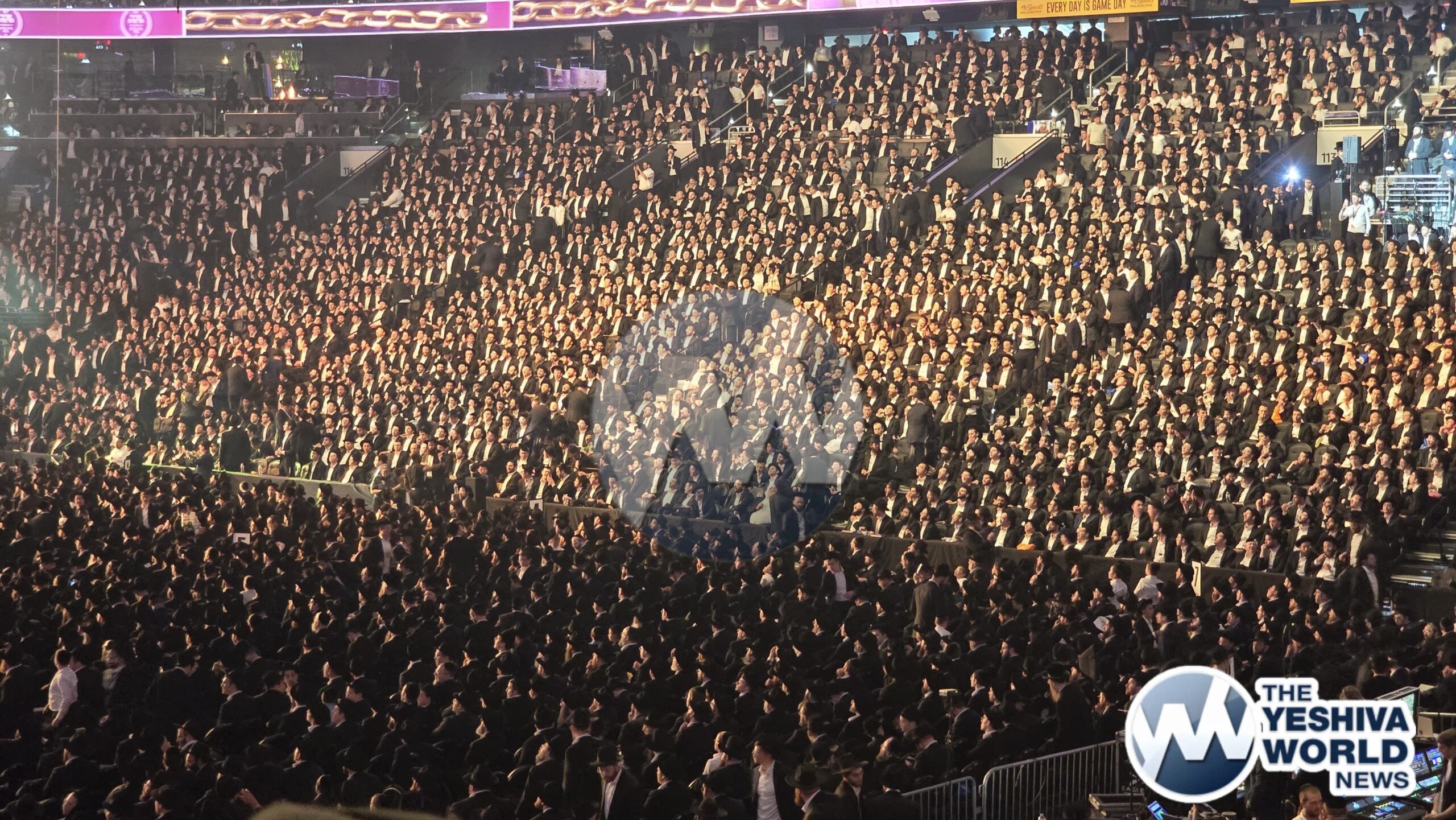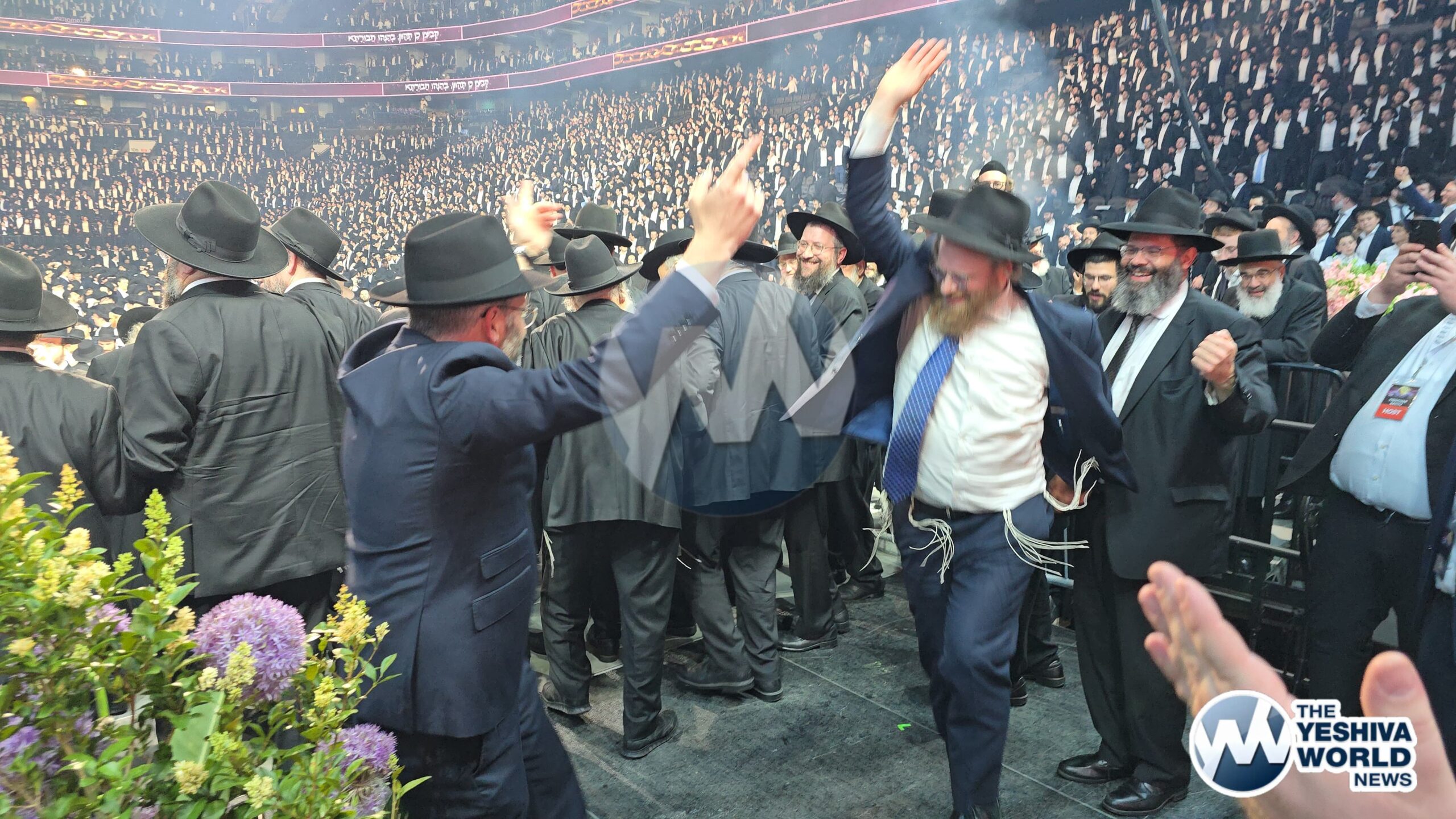 The Wells Fargo Center shakes to its foundations as tens of thousands dance joyously following a siyum on Talmud Bavli and Yerushalmi, both completed in advance of the maamad.