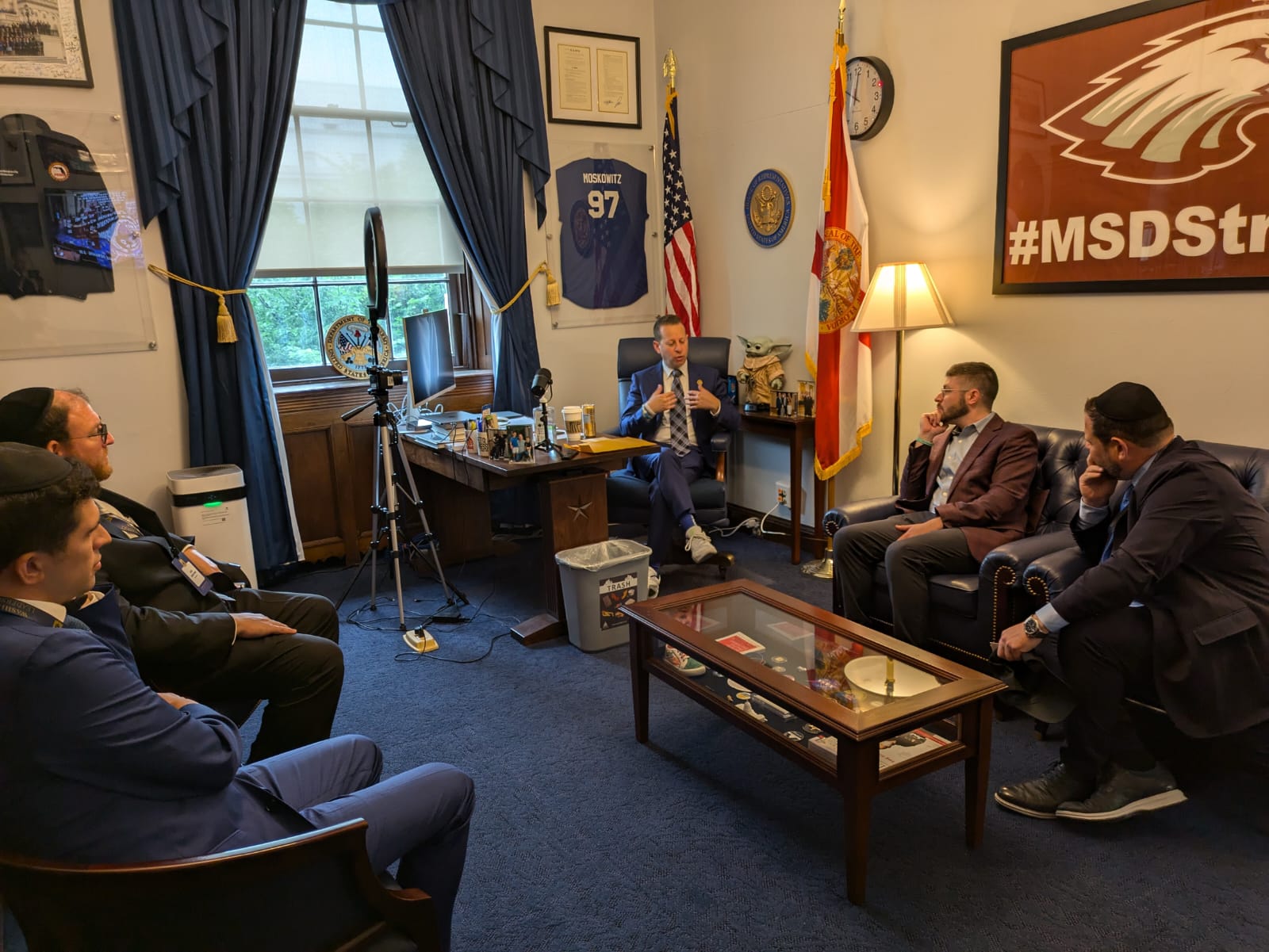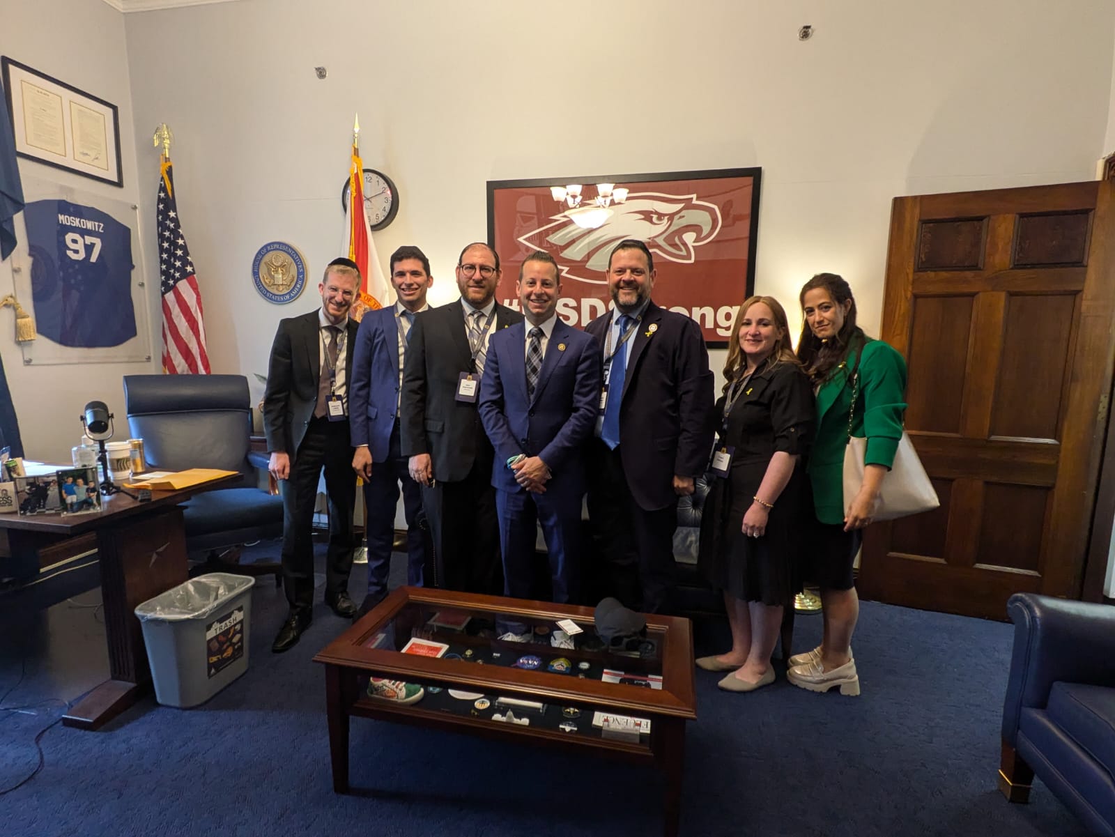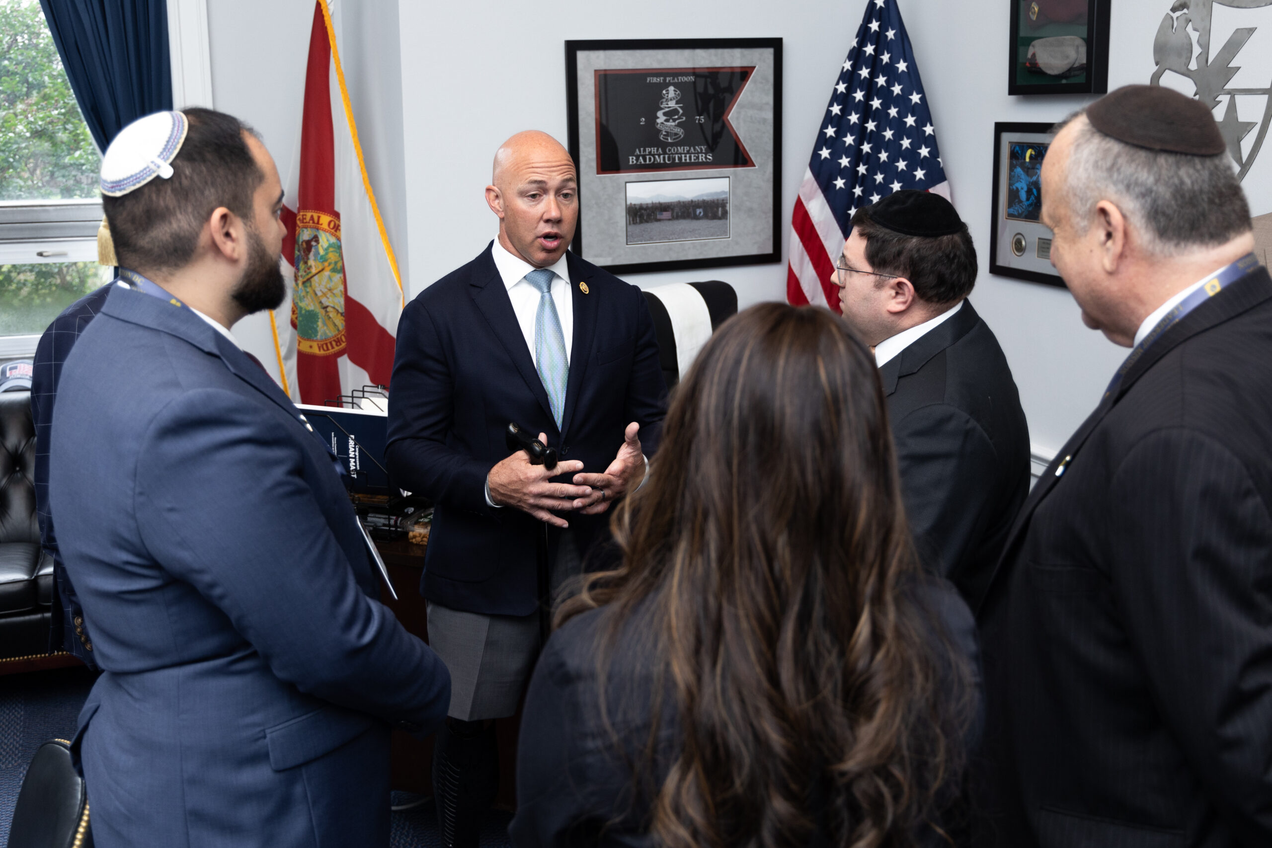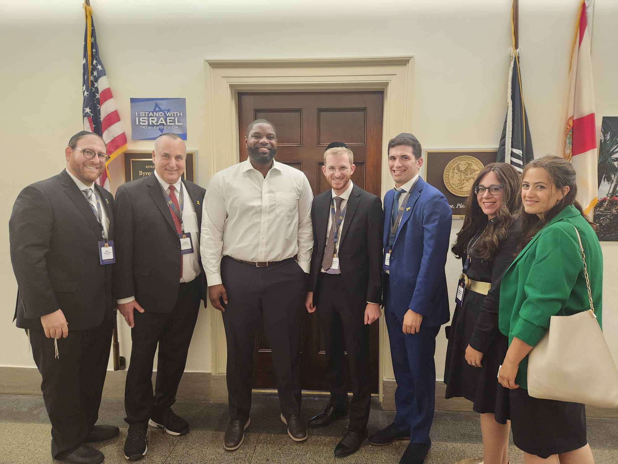 The delegates met with Senator Rick Scott (R-FL), Congressman Jared Moskowitz (D-FL-23), Congressman Brian Mast (R-FL-21), Congressman Byron Donalds, (R-FL-19), Congressman Maxwell Alejandro Frost (D-FL-10), Congressman John Rutherford (R-FL-5), as well as senior staffers from the offices of Senator Marco Rubio (R-FL), Congresswoman Kat Cammack (R-FL-3), Congresswoman Laurel Lee (R-FL-15), Congresswoman Debbie Wasserman Schultz (D-FL-25), and Congresswoman Frederica Wilson (D-FL-25). The group also met with New York Representative Mike Lawler (R-NY-17), and thanked him for his sponsorship of the Antisemitism Awareness Act.