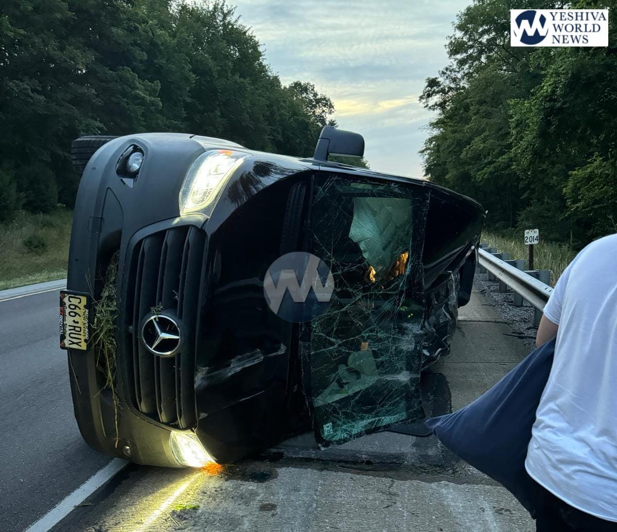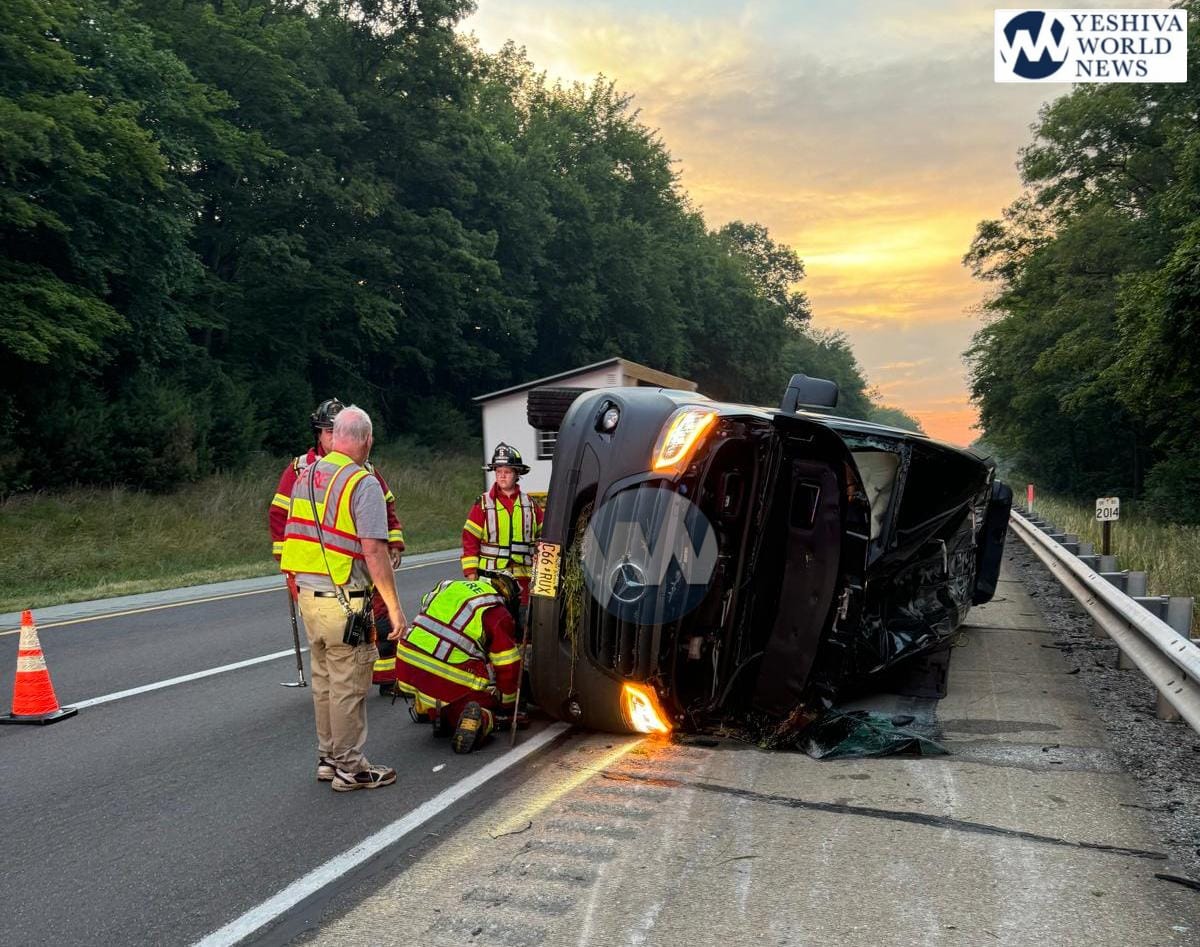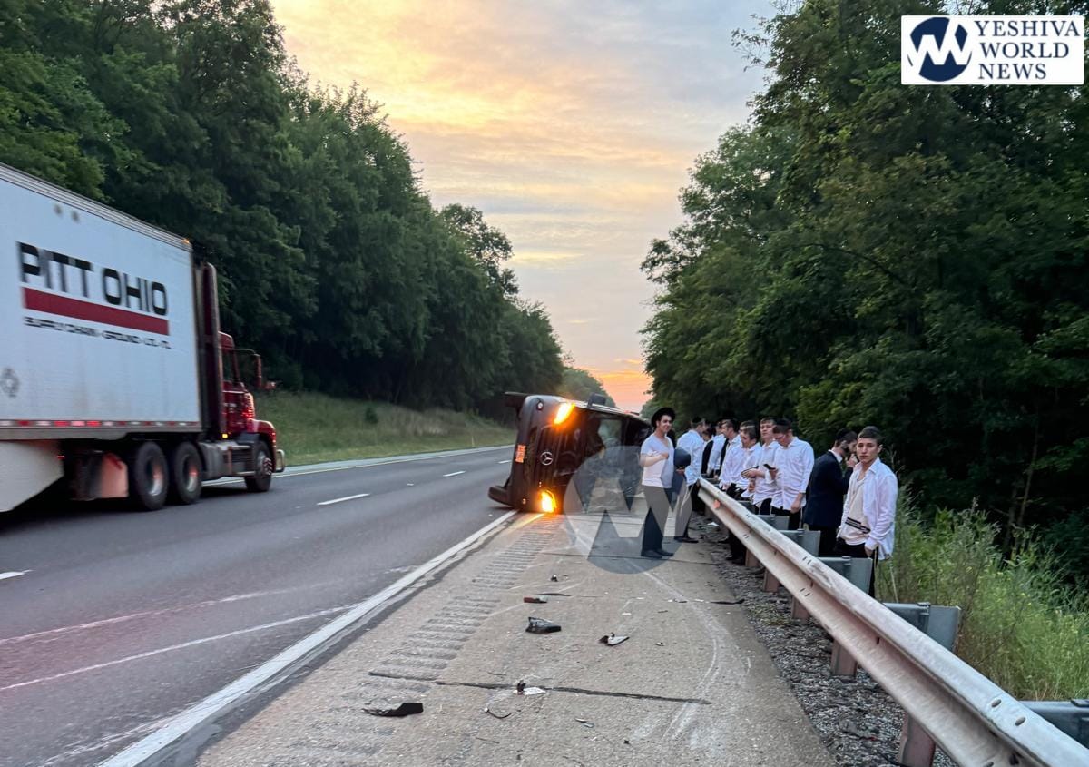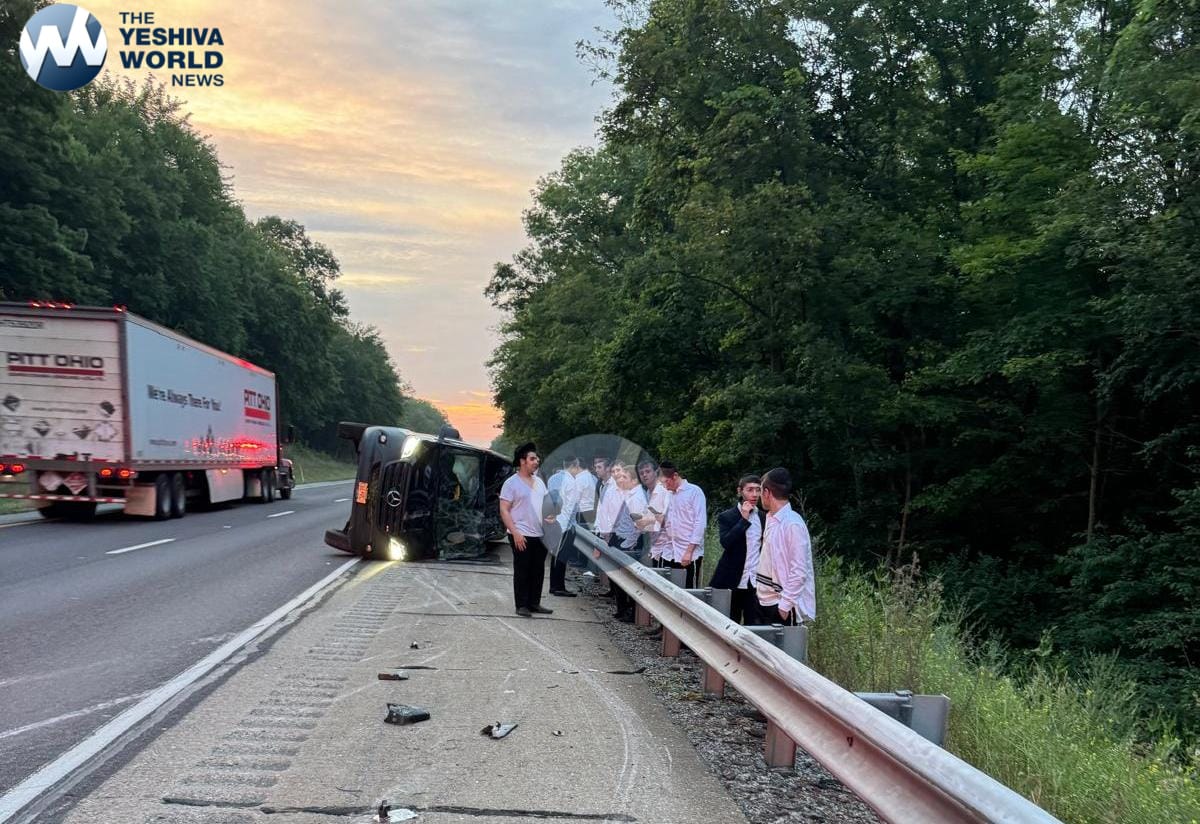 A group of nine bochurim from Telshe Yeshiva in Cleveland miraculously escaped serious injury after their van overturned in an accident on a Pennsylvania highway early Thursday morning. The van was traveling on I-80 in Pennsylvania, en route to Monsey, when it overturned at high speed around 4:30 am.