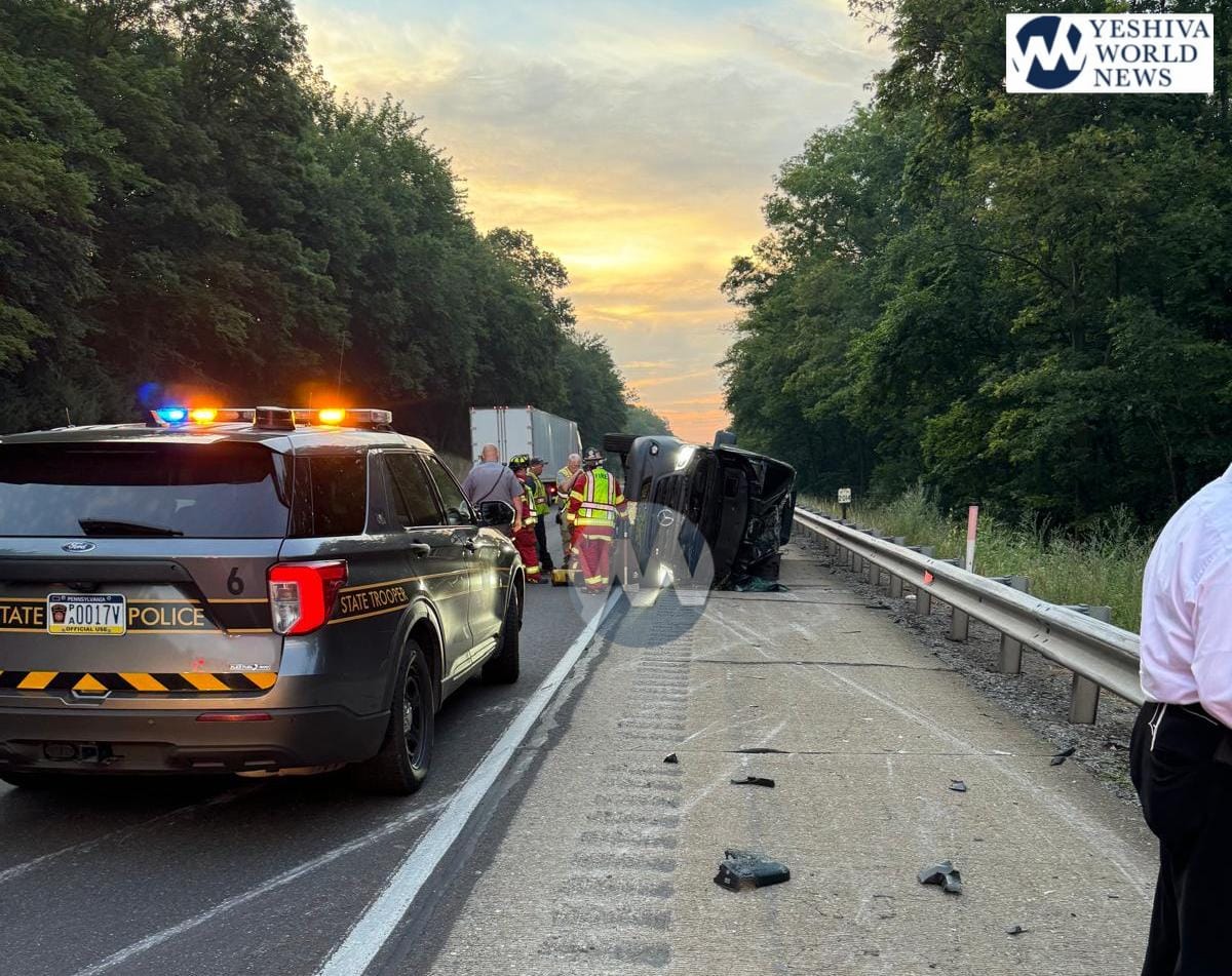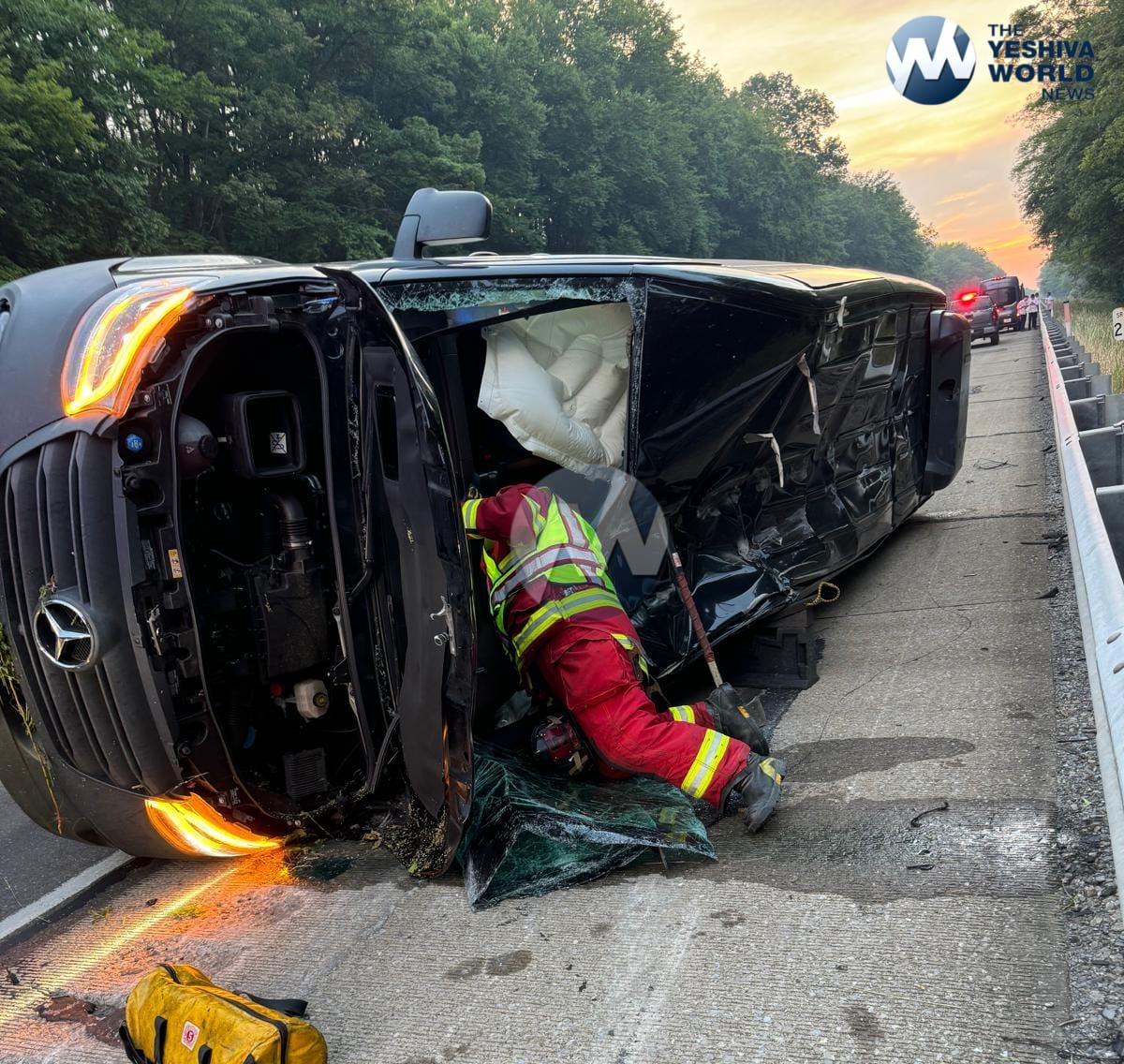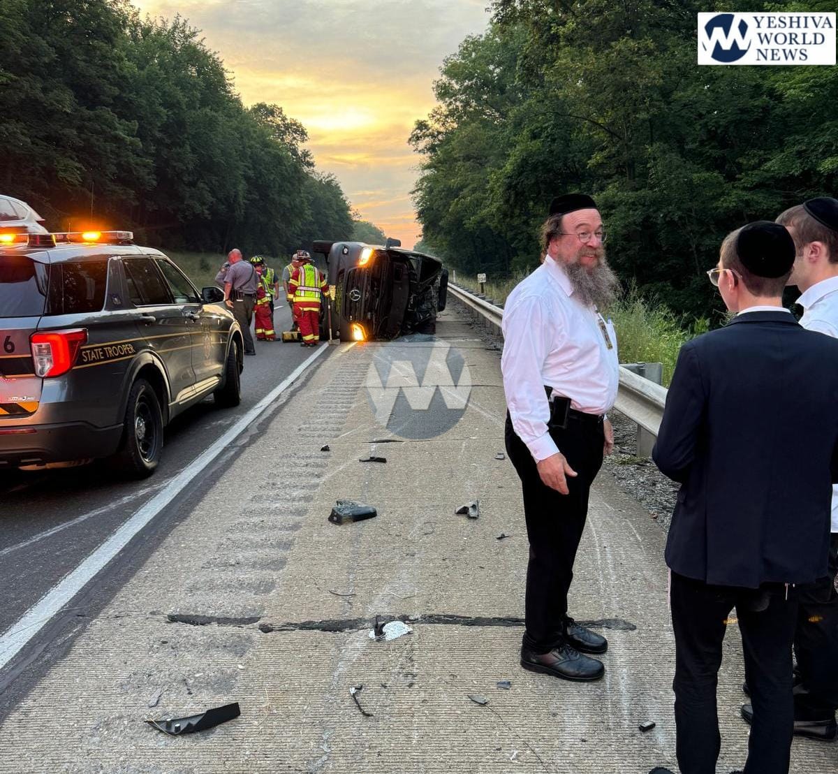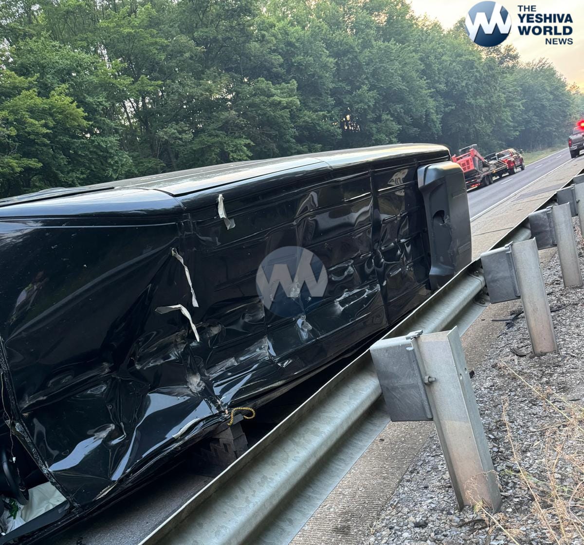 A group of nine bochurim from Telshe Yeshiva in Cleveland miraculously escaped serious injury after their van overturned in an accident on a Pennsylvania highway early Thursday morning. The van was traveling on I-80 in Pennsylvania, en route to Monsey, when it overturned at high speed around 4:30 am.