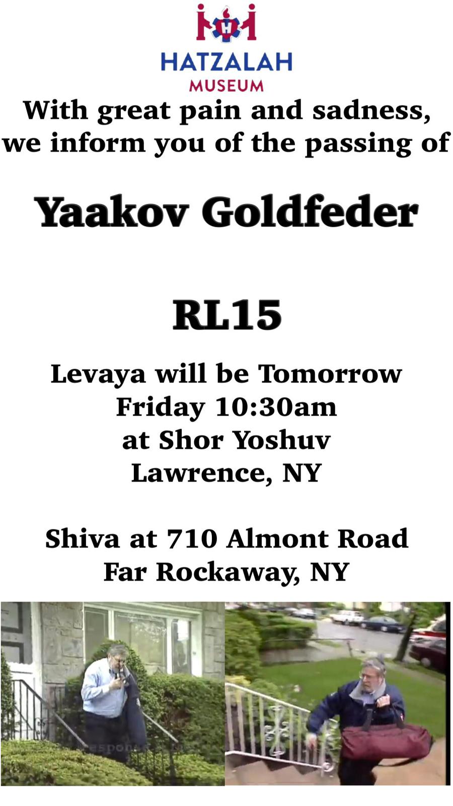 The Levaya will take place tomorrow, Friday morning, at 10:30AM, in Yeshiva Shor Yoshuv. The Kevura will be in Eretz Yisroel.