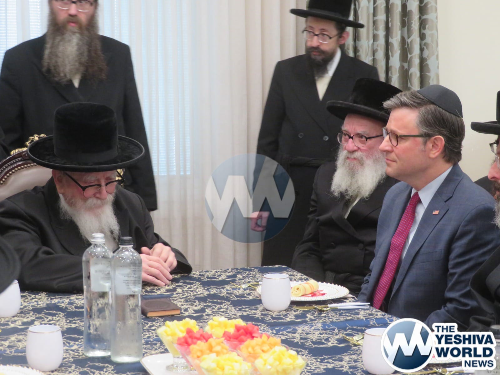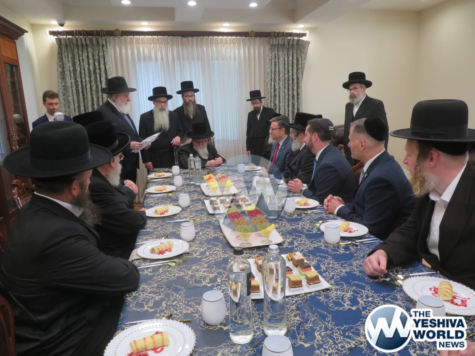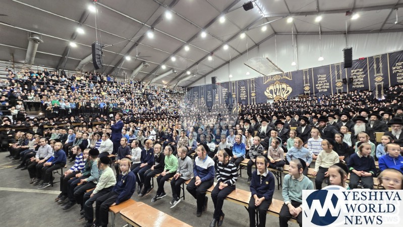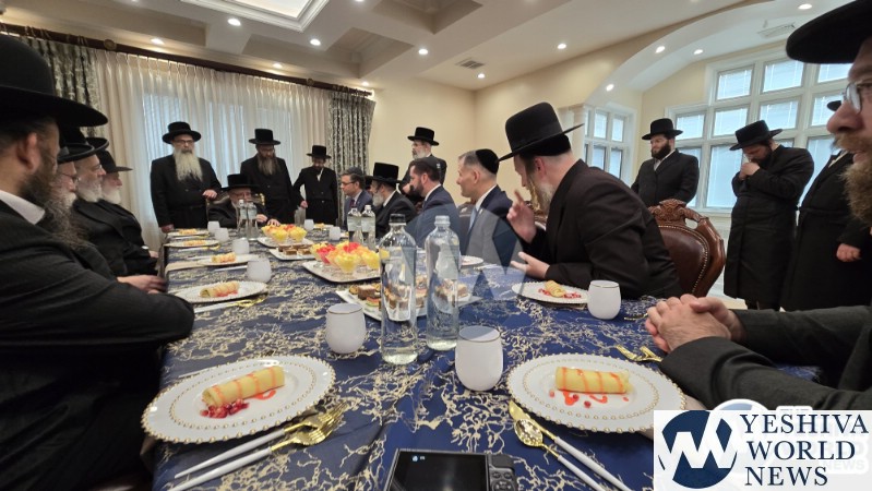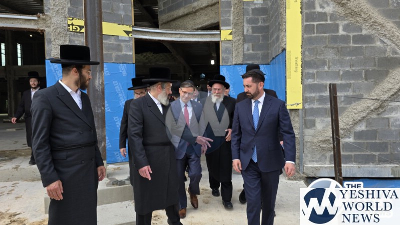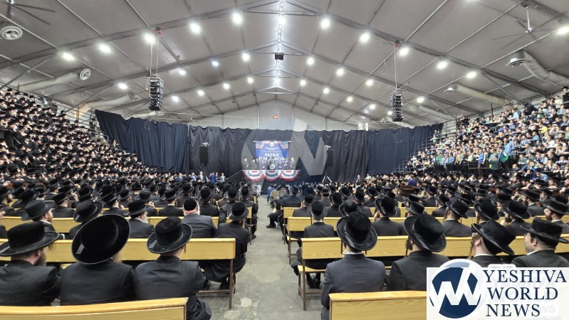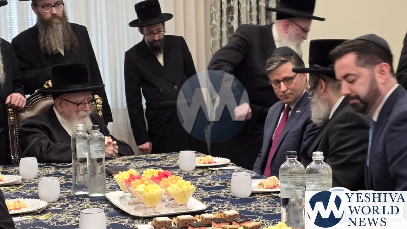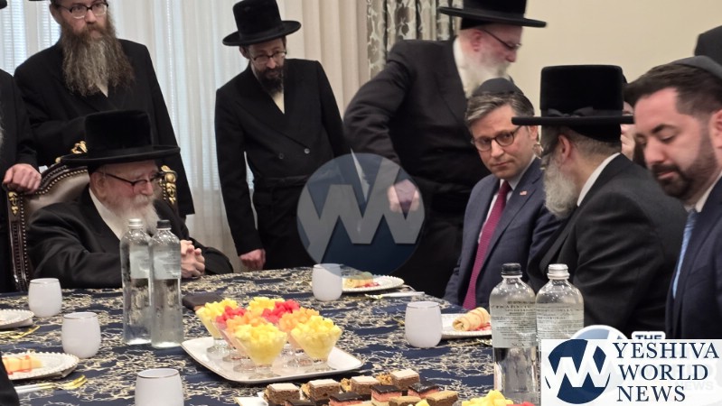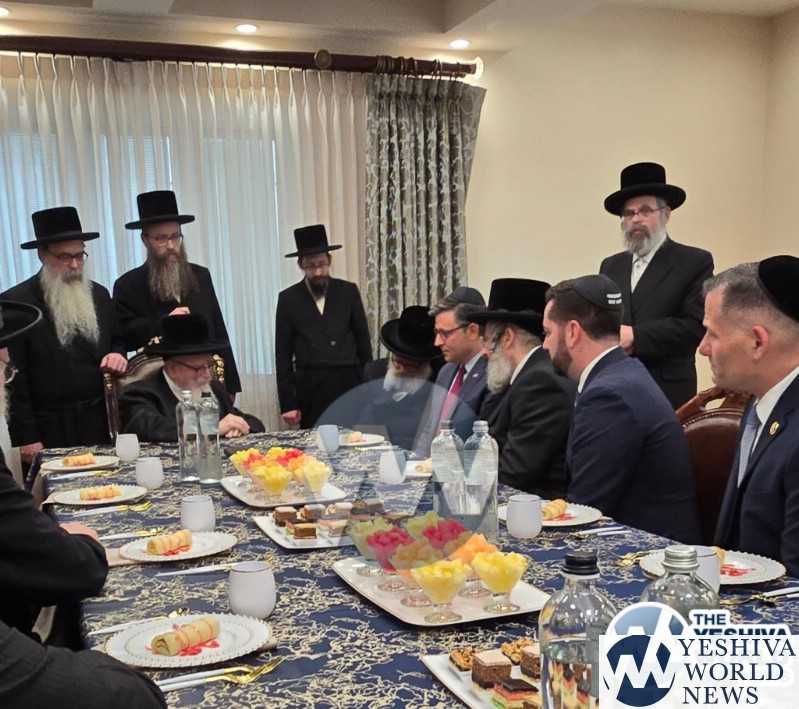 The final stop on Speaker Johnson’s itinerary was New Square, where he met with the Skvere Rebbe from 10:00 to 11:00 a.m. Following the private meeting, he addressed a large crowd in the large tent near The Skvere Rebbe’s residence.