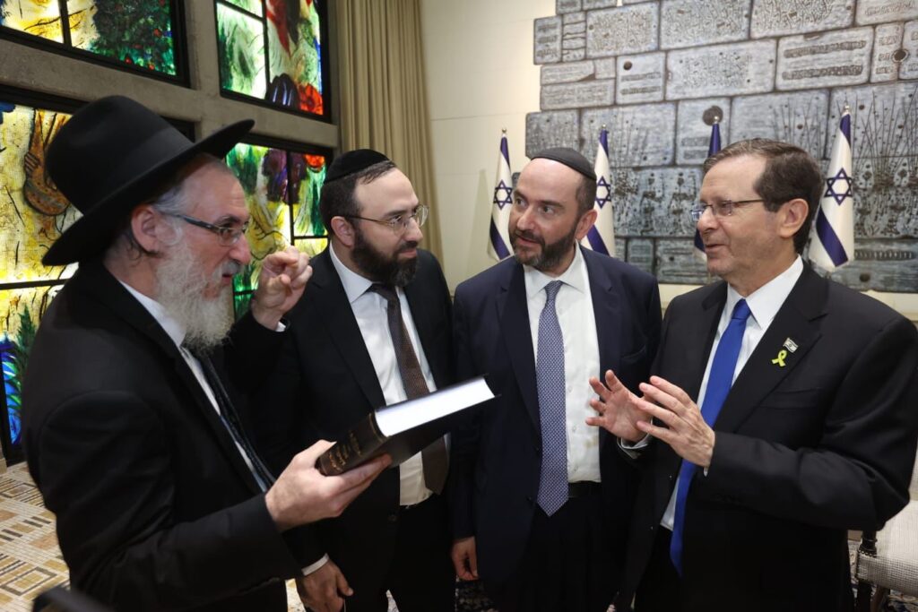 During the meeting, Rabbi Dunner presented the President with a new edition of ‘Ohr Hayashar’, a Talmudic halakhic book written by the President’s great-grandfather, Rabbi Shmuel Yitzchok Hillman.