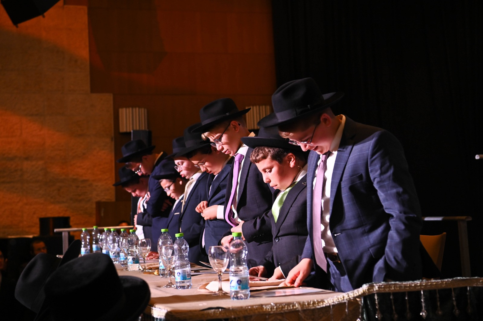 The excited boys were seated on a magnificent stage, next to gedolei Yisrael from all communities, Chassidish, Litvish and Sephardi who honored the boys and even spoke in praise of the organization.