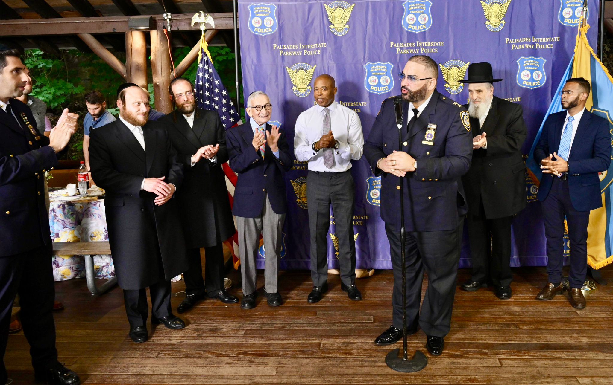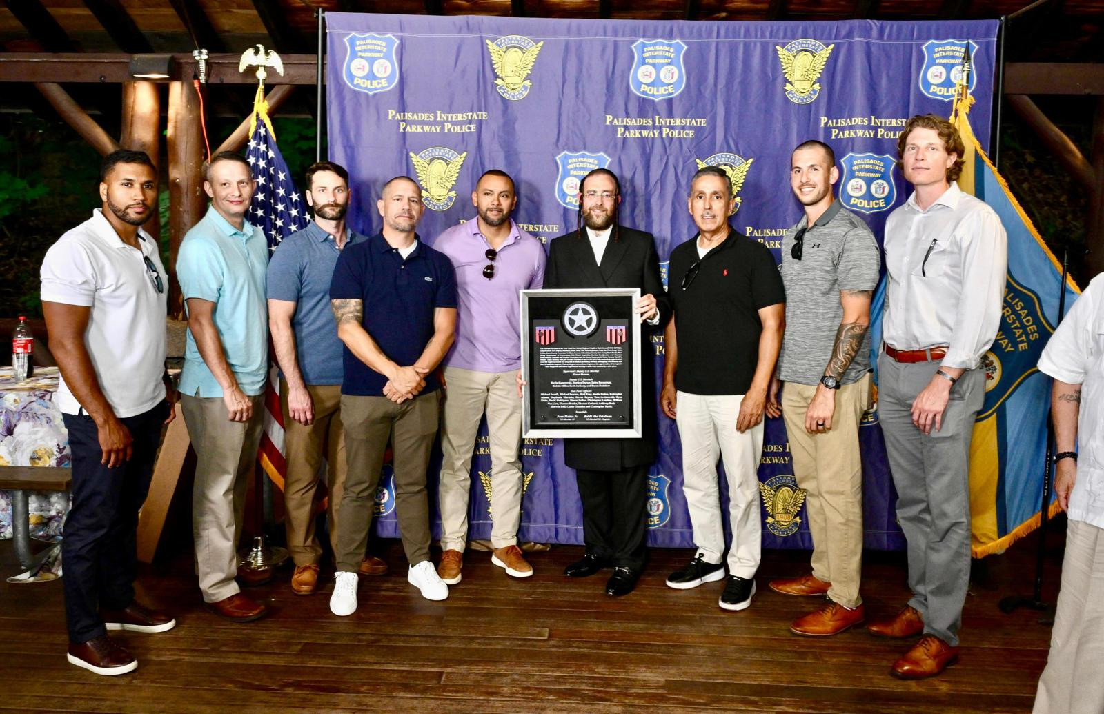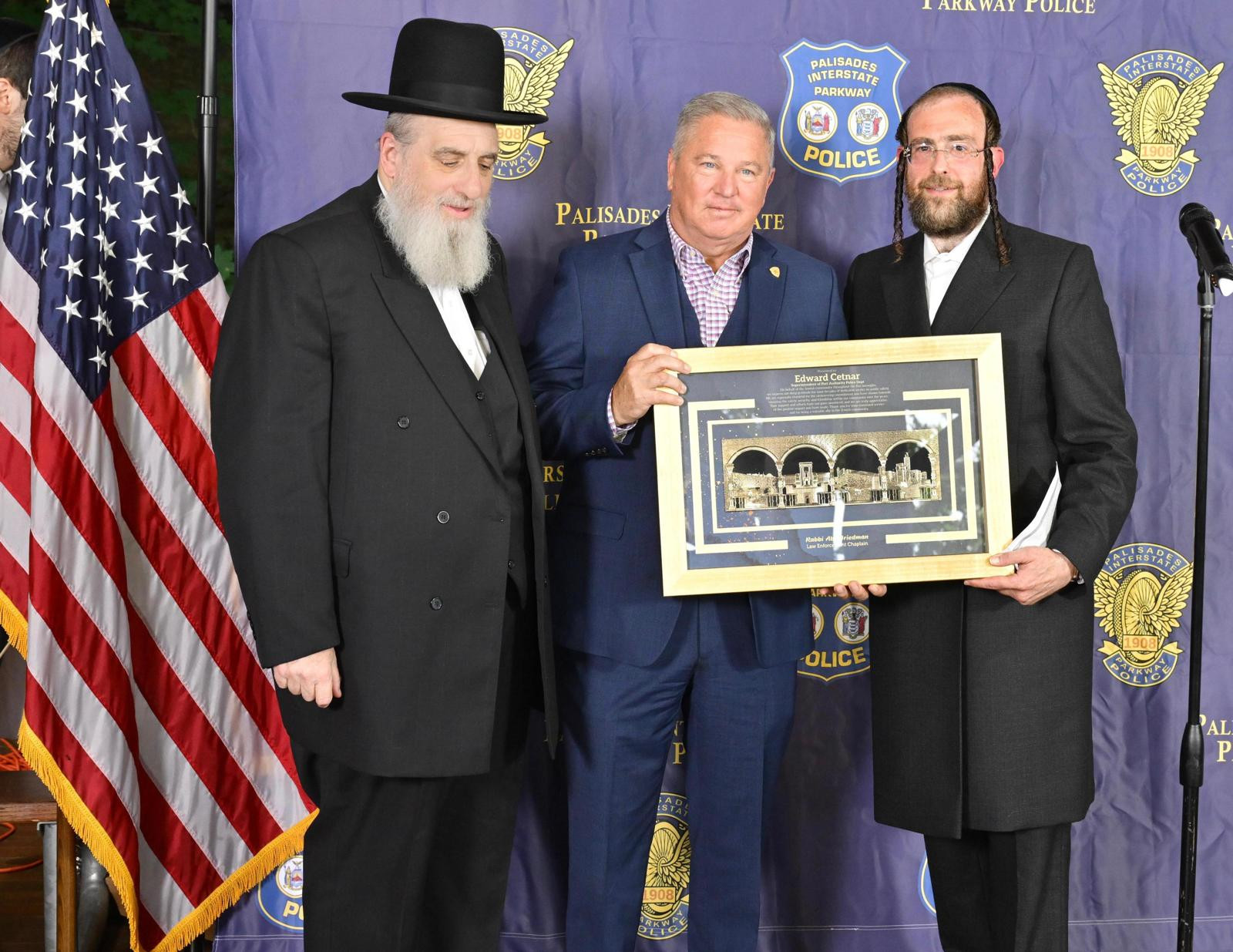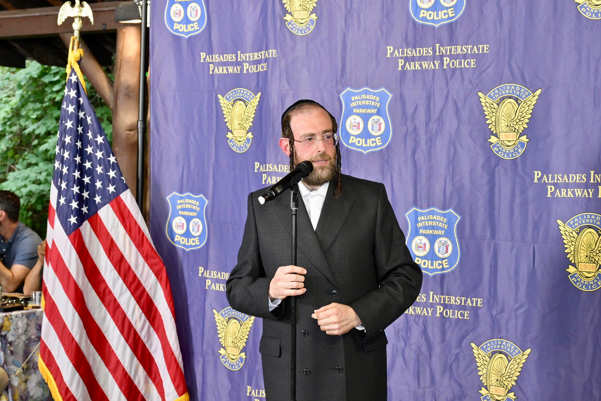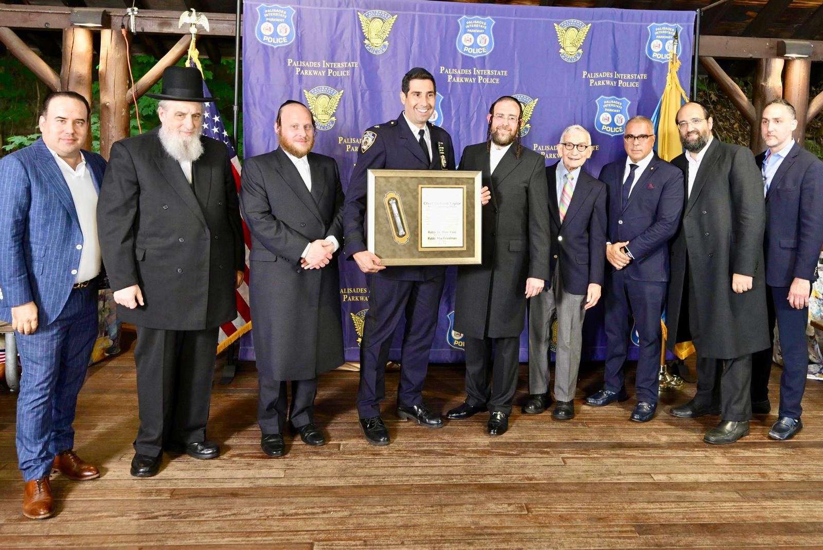 Rabbi Bernard Freilich, a senior community leader and New York State police liaison, praised Rabbi Abe Friedman for his years of community activism and dedicated service to those in need. Chief Chaplain Rabbi Alvin Kaz also commended Rabbi Friedman for his unwavering support to law enforcement families during times of hardship.