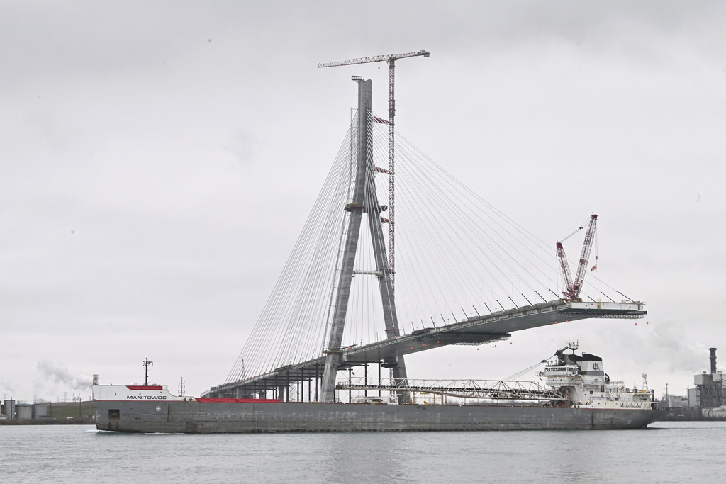 The finished bridge will measure 1.5 miles (2.4 kilometers). It will stand 150 feet (45.7 meters) above the river and 720 feet (219.4 meters) high, making it the largest Canadian and United States land port along the two countries’ border and one of the 10 longest bridges in North America.