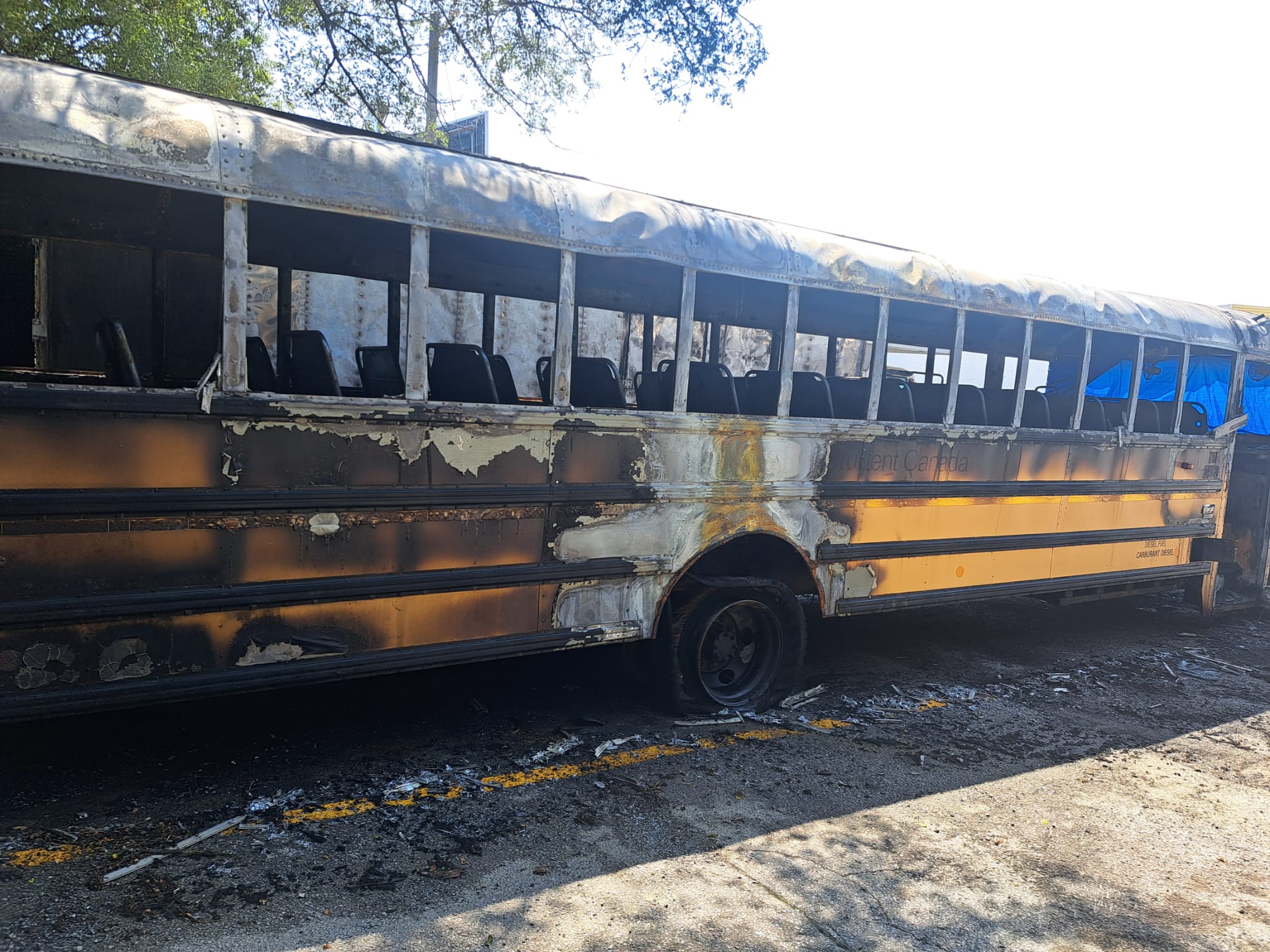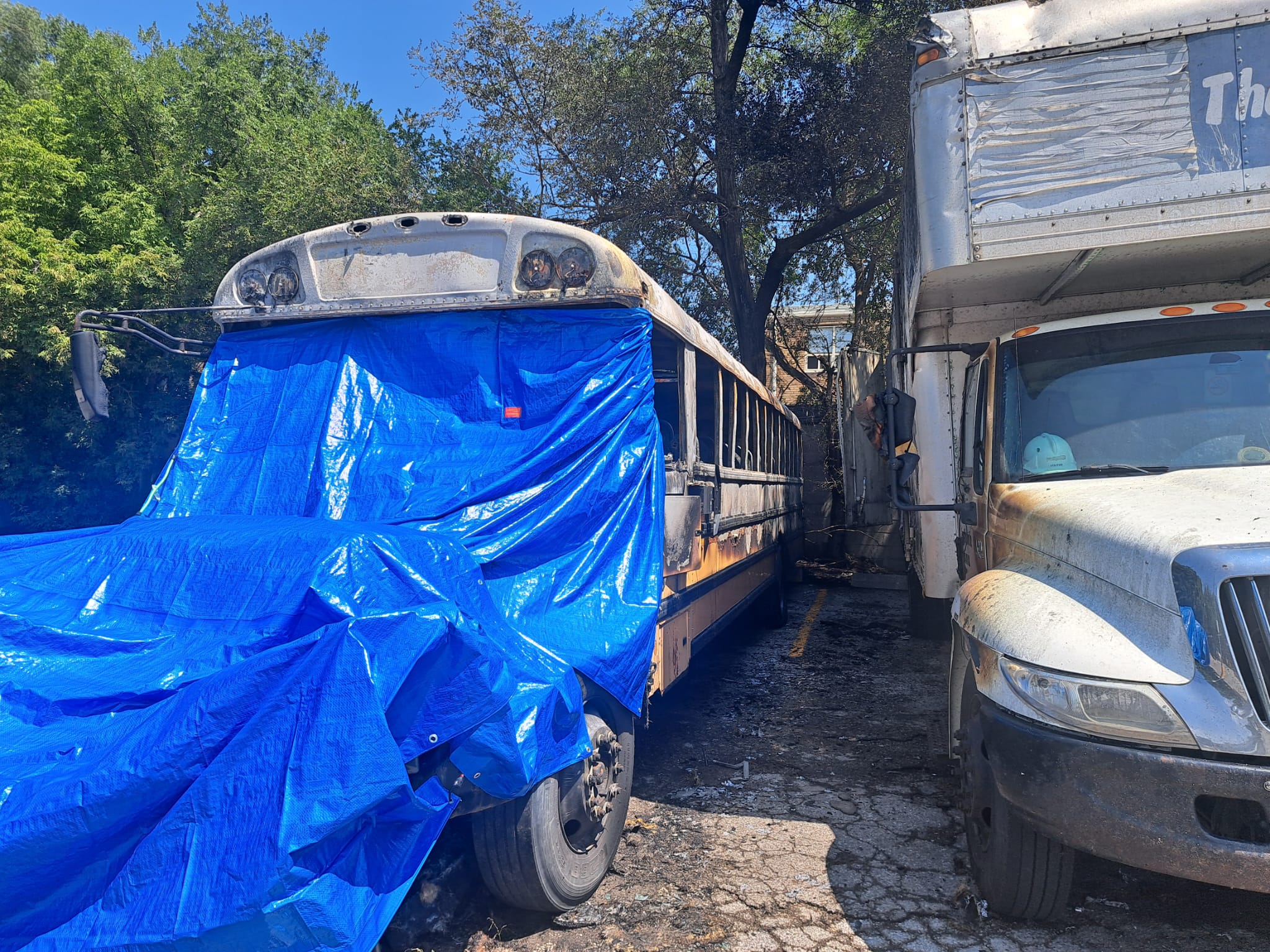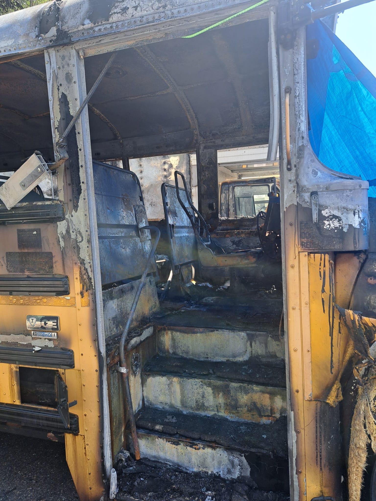 Insurance will pay for a new bus. Hopefully the new bus will have heating and air condition.