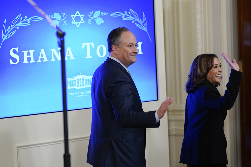 Emhoff, the first Jewish person to serve as the spouse of a nationally elected U.S. leader, has been one of the most visible members of the Biden administration speaking about combating antisemitism. He hung mezuzahs on the doorposts of the vice president’s residence and led Passover celebrations at the White House.