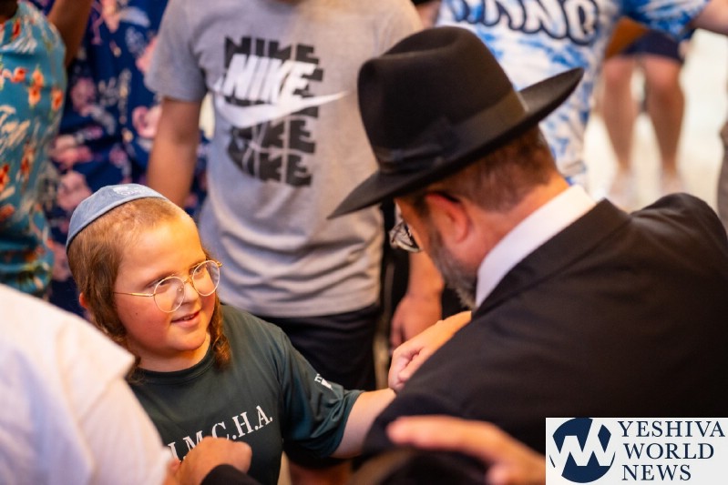 During his visit, Rav Feinstein toured the beautiful campus, witnessing the renowned Camp Simcha energy firsthand. Rav Feinstein met with the campers and staff and joined them in joyous dancing.