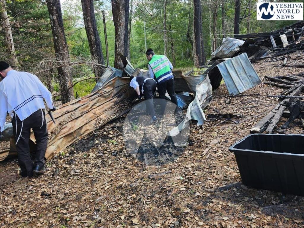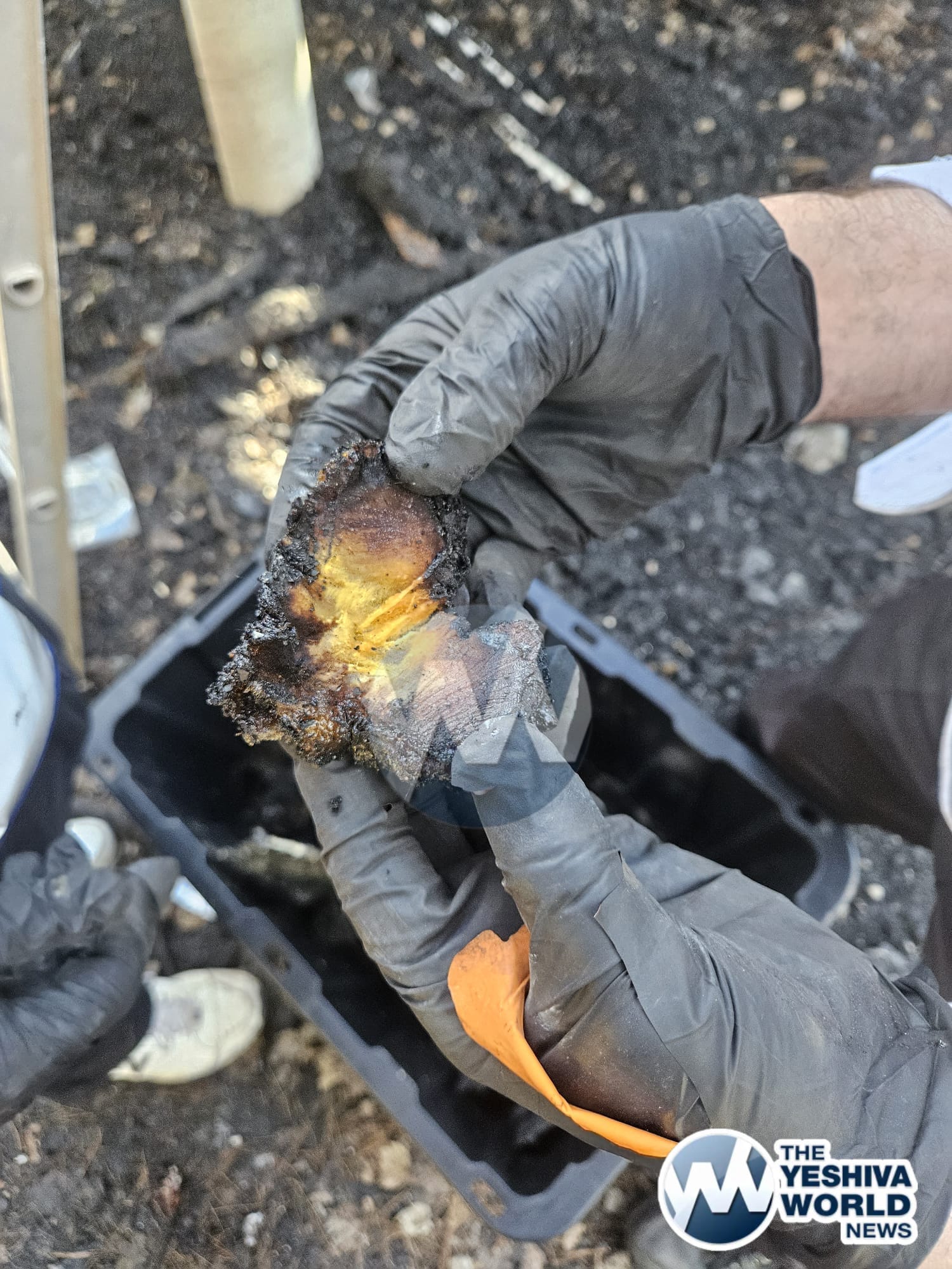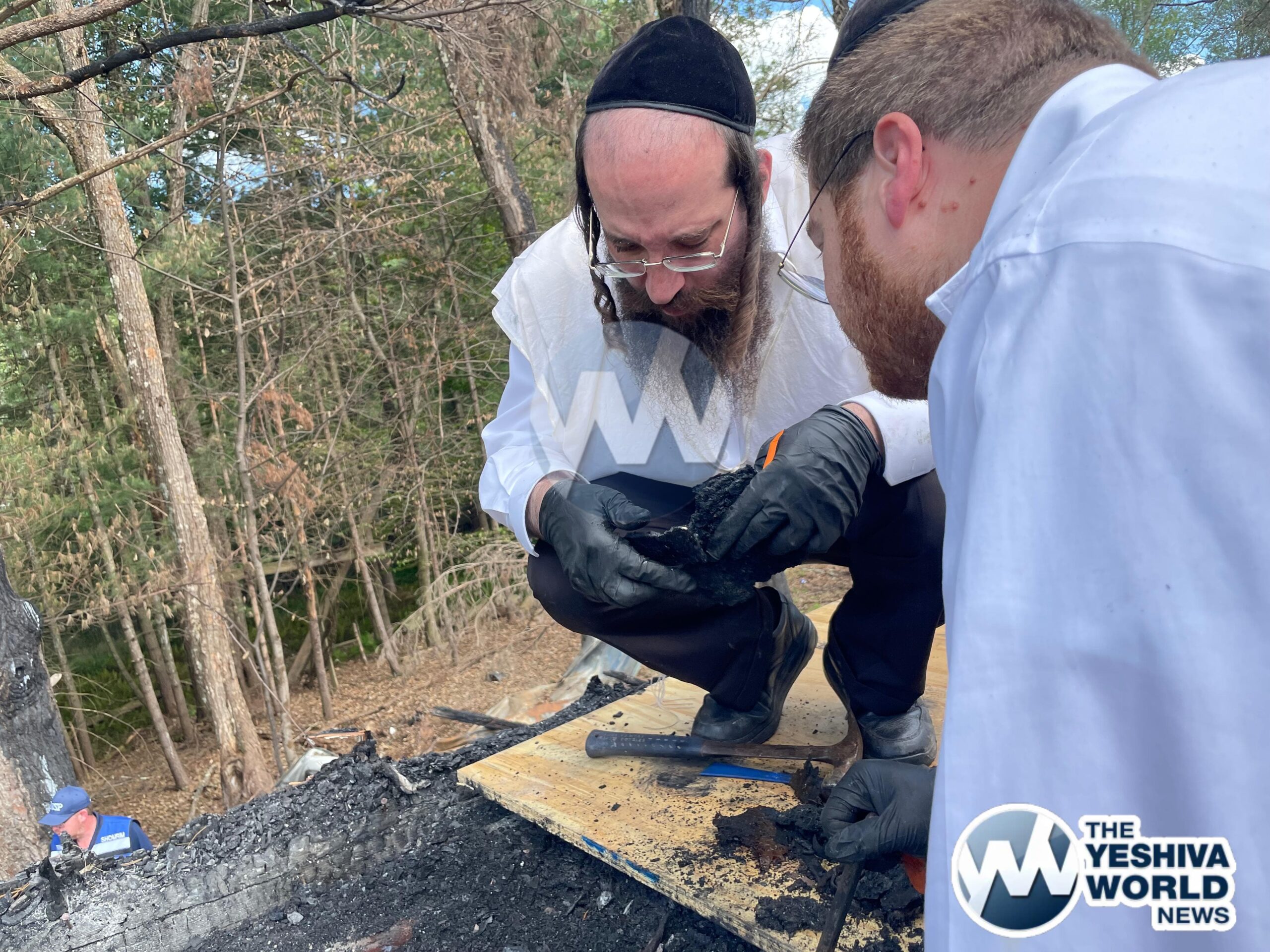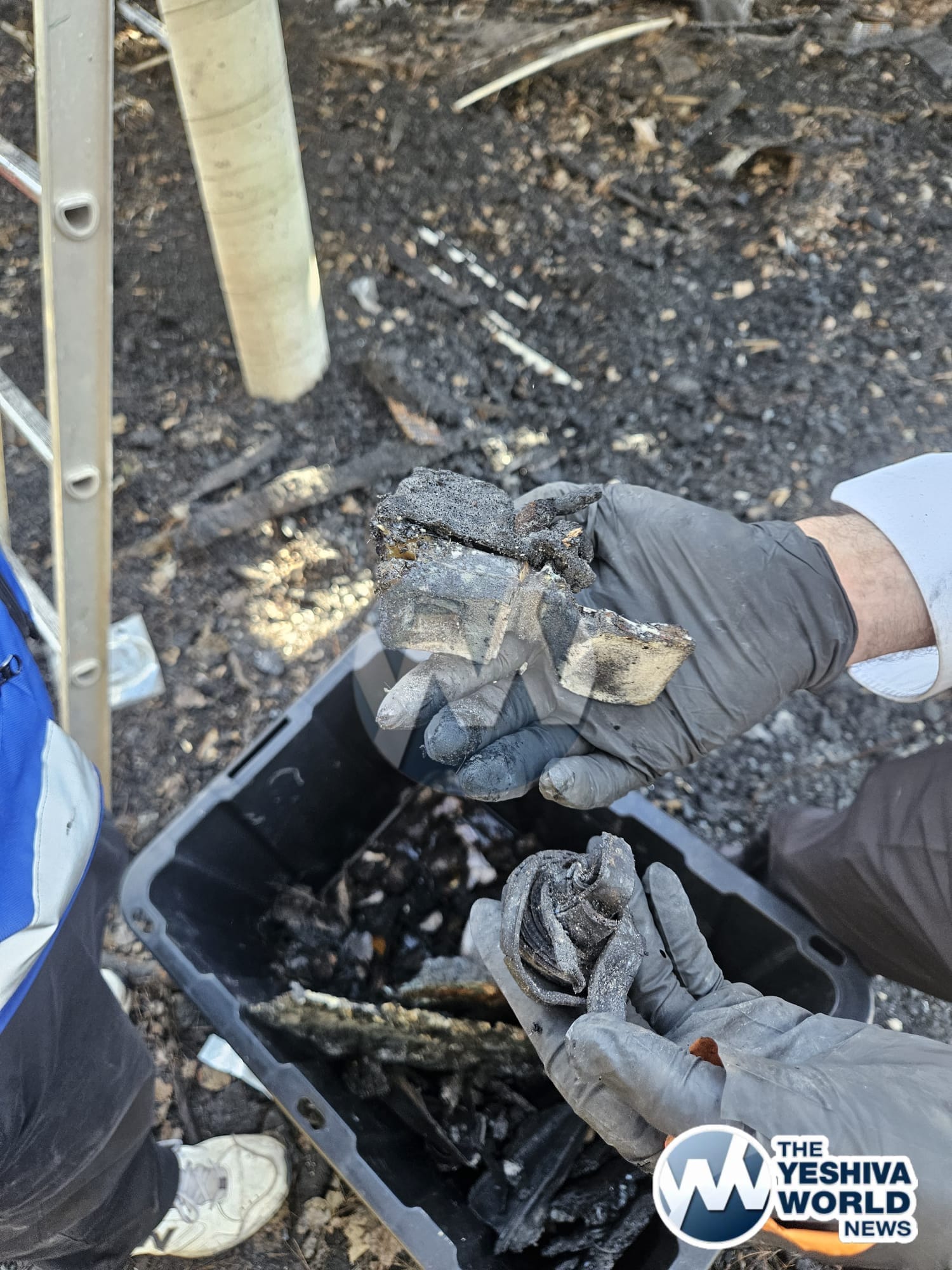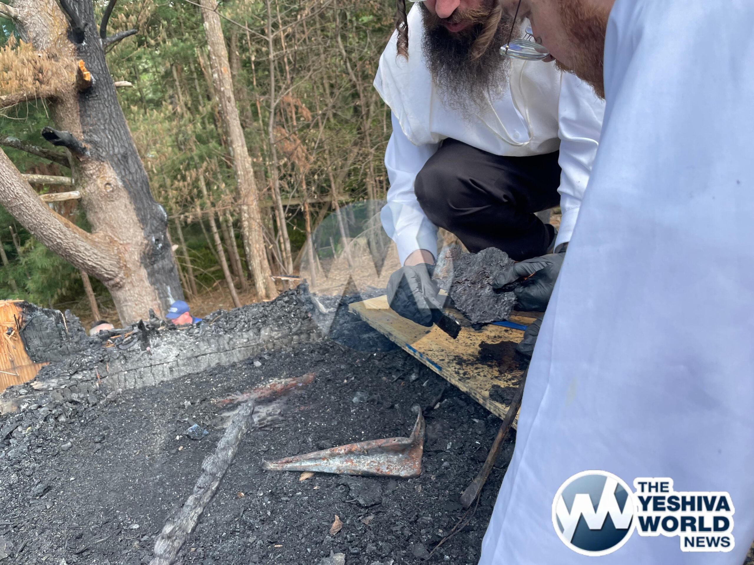Following the fire and a subsequent investigation by local and county authorities, dozens of Chesed Shel Emes volunteers, along with assistance from RNSP Shomrim, sifted through the structure’s wreckage and ashes to find the tefillin and seforim that had been r”l destroyed.