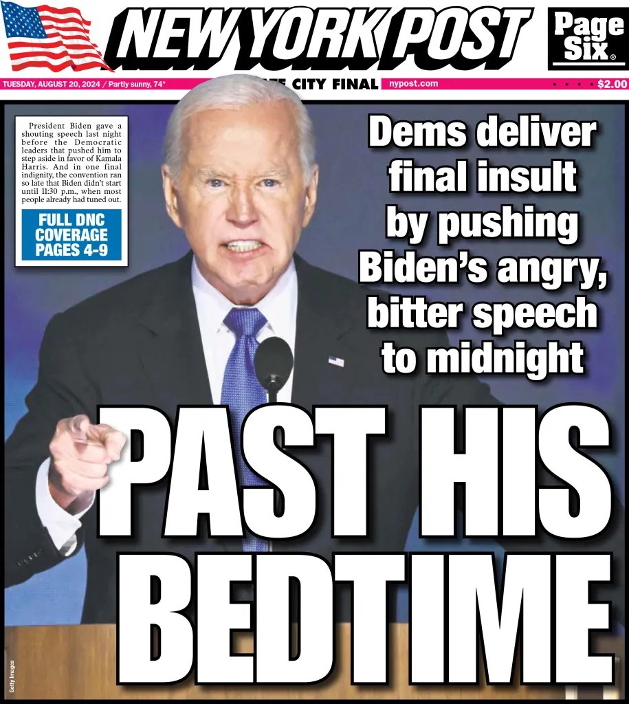 President Biden is still the president, accomplishing more in the few weeks since he made the decision to withdraw from the race, than the degenerate adulterous lying felon accomplished in 4 years. Apparently the Post didn’t hear the address, if they want to hear “angry, bitter” words, they just have to tune in to grumpy OLD macDonald anytime.