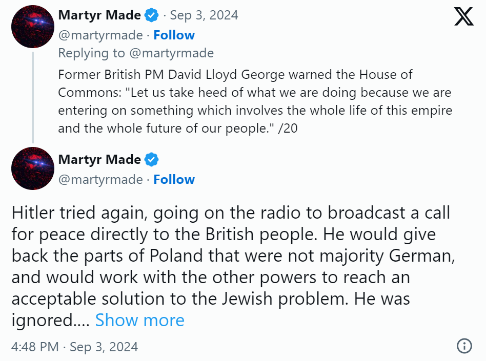 Following the release of the episode, Cooper defended his position in a Twitter thread, reiterating his belief that Churchill was the “chief villain” of the war and doubling down on his argument that Churchill was worse than Hitler.