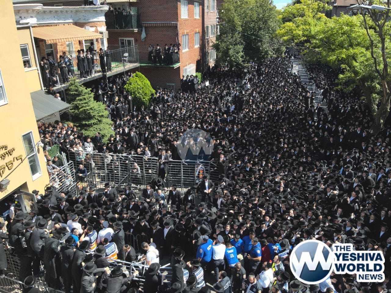 Thousands turned out in Boro Park for the Levaya of the Skulener Rebbe, HaRav Yeshaya Yaakov Portugal ZT”L. Thousands more gathered in Monsey for the Kevura.