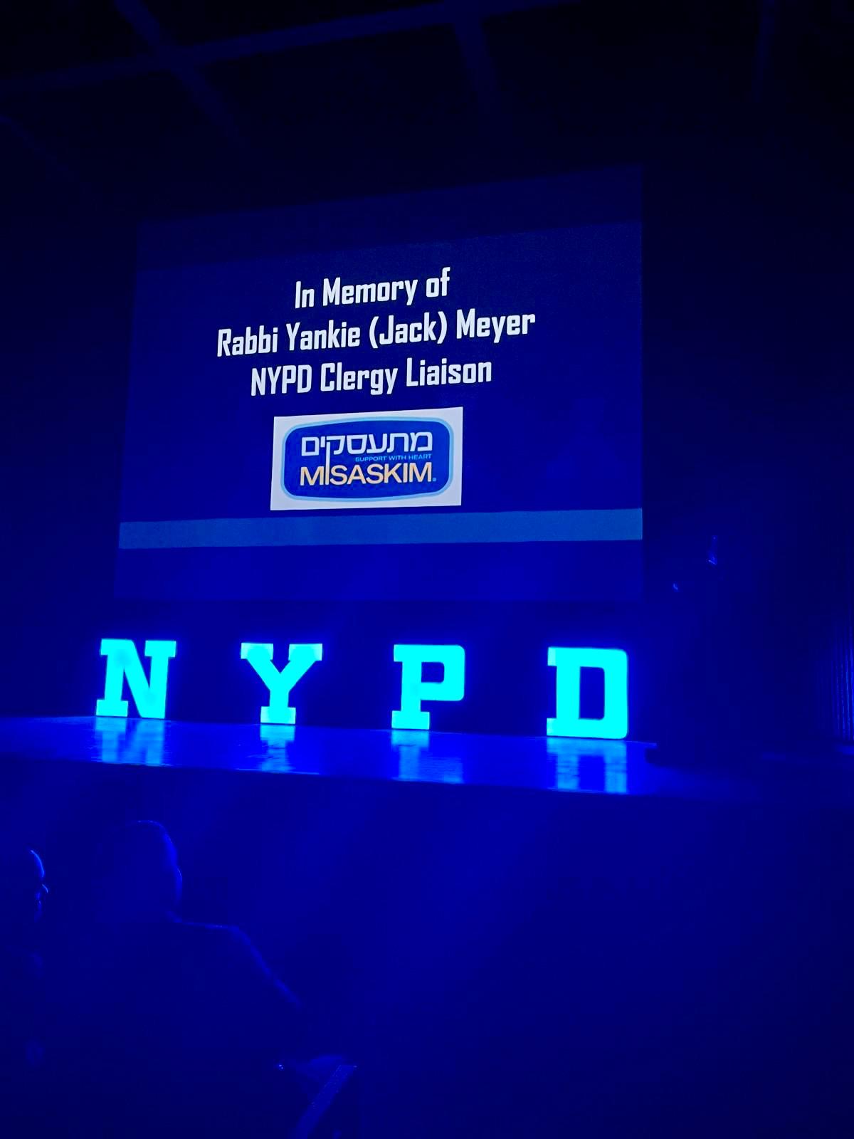 A meaningful memorial tribute was highlighted on the screens for Rabbi Yankie Meyer, Founder of Misaskim, and retired Deputy Chief Chuck Scholl of Patrol Borough Brooklyn South.