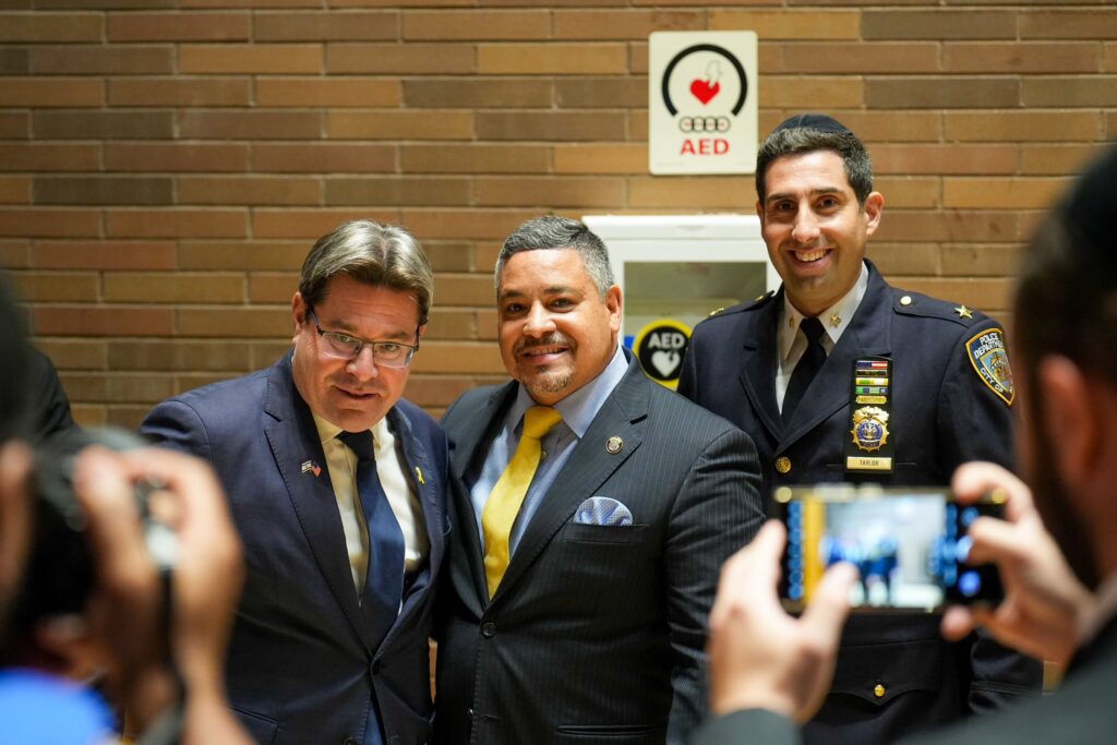 Chairman of Mayor Eric Adams’ Jewish Advisory Council Joel Eisdorfer, Deputy Chief of Staff to the Mayor Menashe Shapiro, Mayor’s International Affairs Commissioner Ed Mermelstein, Mayor’s CAU Commissioner Fred Kreizman, Director of the Mayor’s Special Projects Office Uri Fraenkel, CAU Jewish Liaison Moshe Davis, NYC Councilman Kalman Yeger and City Council Jewish Liaison Pesach Osina were also in attendance.