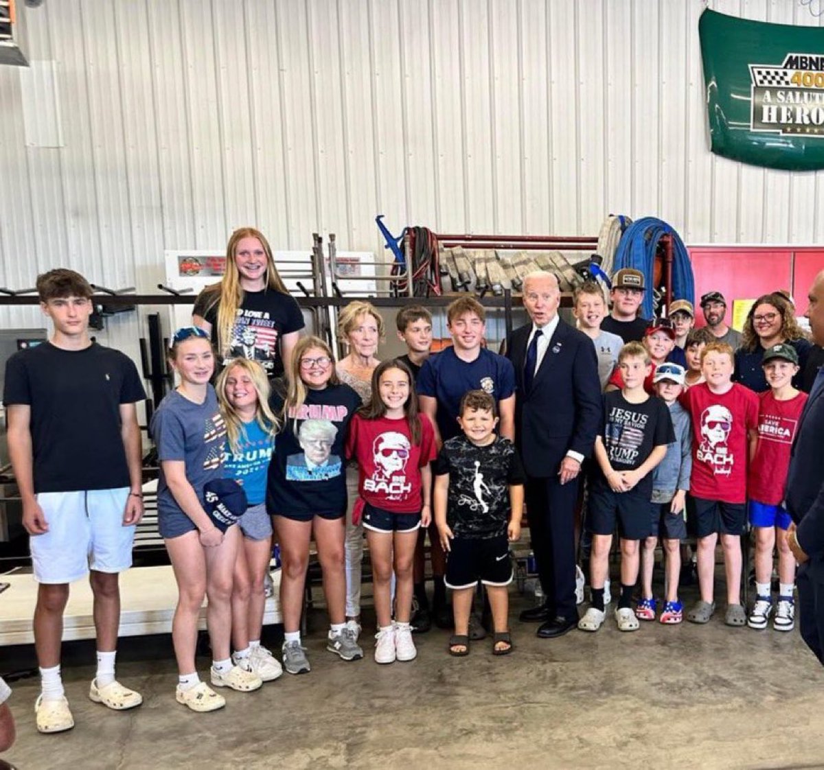 Shortly after, Biden posed with a group of children donning pro-Donald Trump attire in a photo op at a Pennsylvania firehouse on Wednesday, September 11. The president appeared awkward as he stood in the middle of about 16 kids, many donning shirts in support of Trump.
