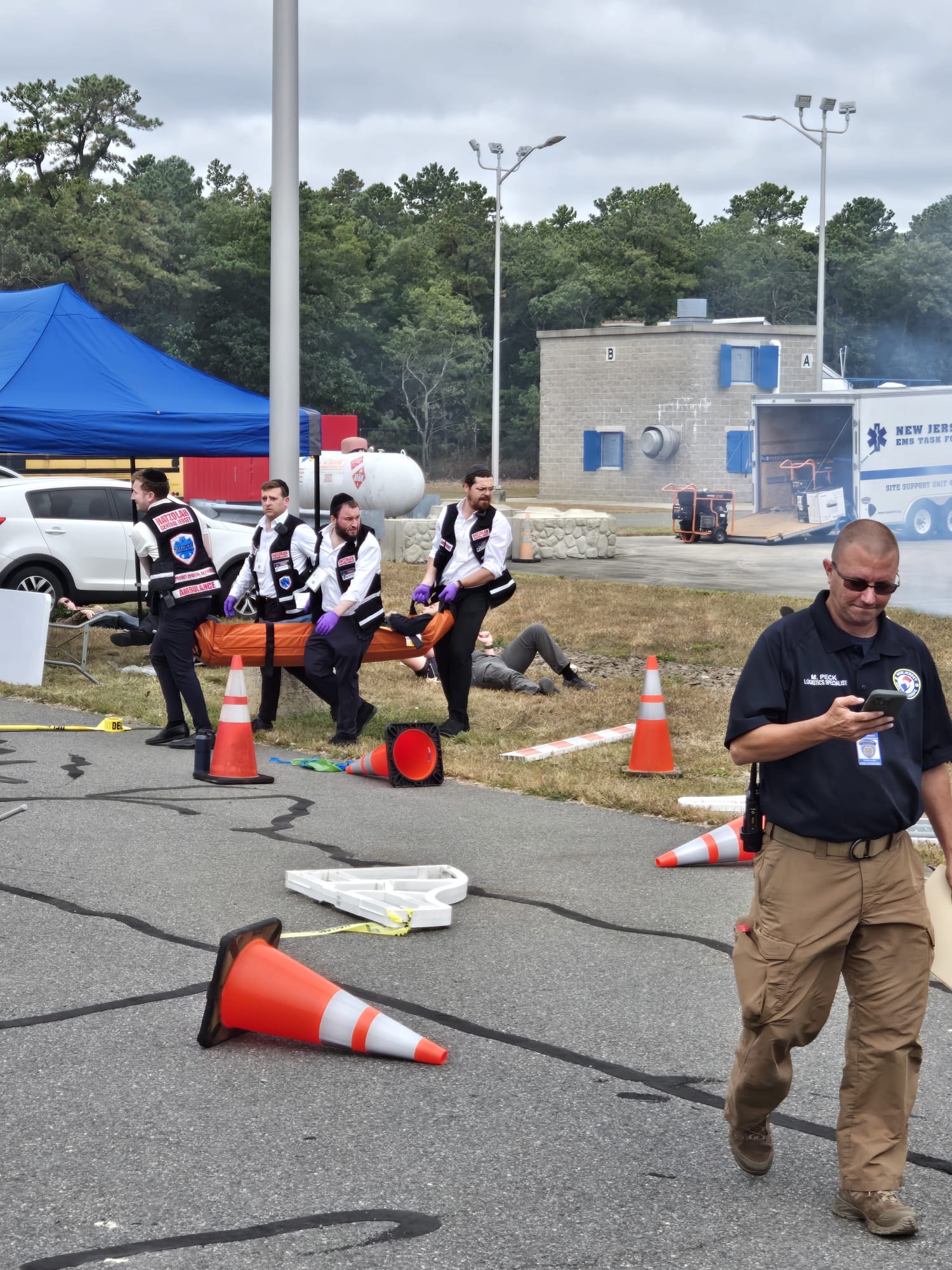 On Sunday, over a dozen members of Hatzolah of Central Jersey joined emergency services from across the county at the Ocean County Training Center for a comprehensive Mass Casualty Incident (MCI) training drill. The exercise simulated a car crashing into a large food festival, resulting in dozens of injured individuals. The drill also incorporated a hazardous materials (hazmat) component, adding complexity to the real-world emergency response scenario.