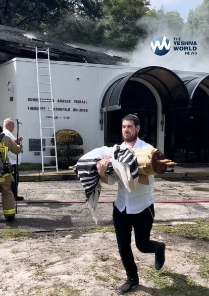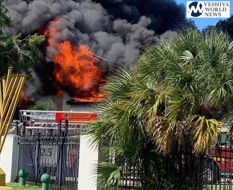 A fire broke out at the Chabad of Greater Orlando headquarters on Sunday morning shortly after Shacharis ended, causing severe damage to the building. Miraculously, the shul’s six Sifrei Torah were saved from the inferno.
