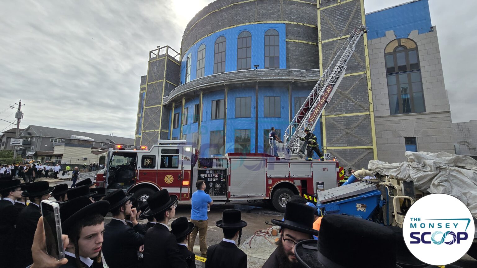 A fire broke out this morning at the New Skvere Shul located at 18 Jefferson Avenue, filling the area with thick black smoke, MONSEY SCOOP REPORTED. The fire reportedly originated in the laundry room, just one day before thousands of Skvere Chassidim were expected to gather for Alef Slichos in the newly constructed shul.