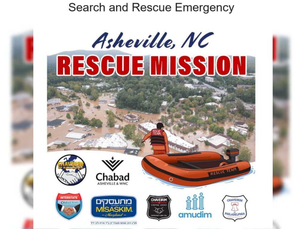 The outpouring of support follows a plea from Rabbi Shaya and Mrs. Chaya Susskind, the Chabad emissaries serving the Jewish communities in Asheville and western North Carolina. In response, Jewish organizations from across the eastern U.S. have rallied to the cause. Participating groups include Baltimore Chaverim, Rockland Chaverim, Chaverim of Central Jersey, Chaverim of Philadelphia, Interstate Chaverim, Misaskim, and Amudim.