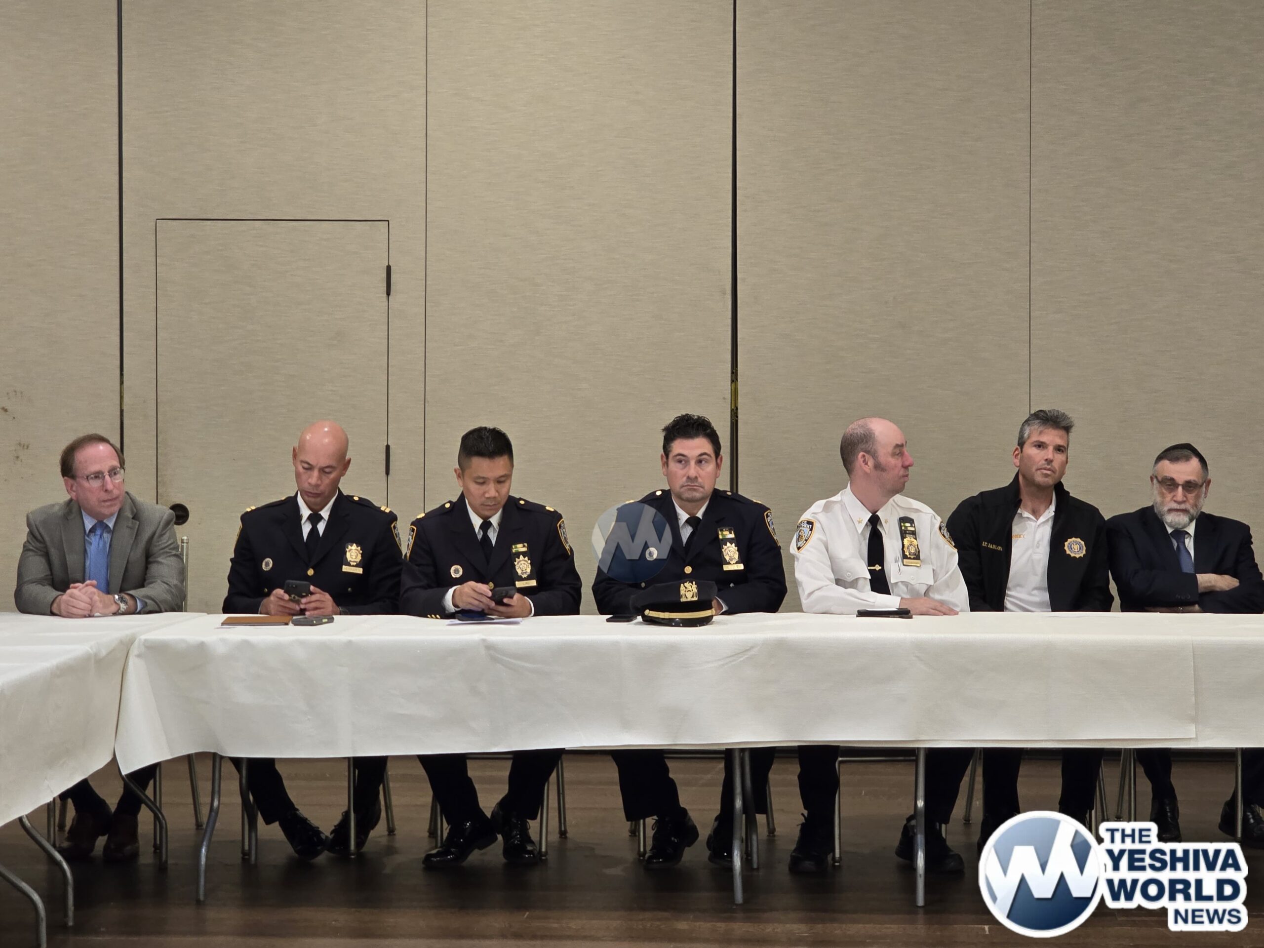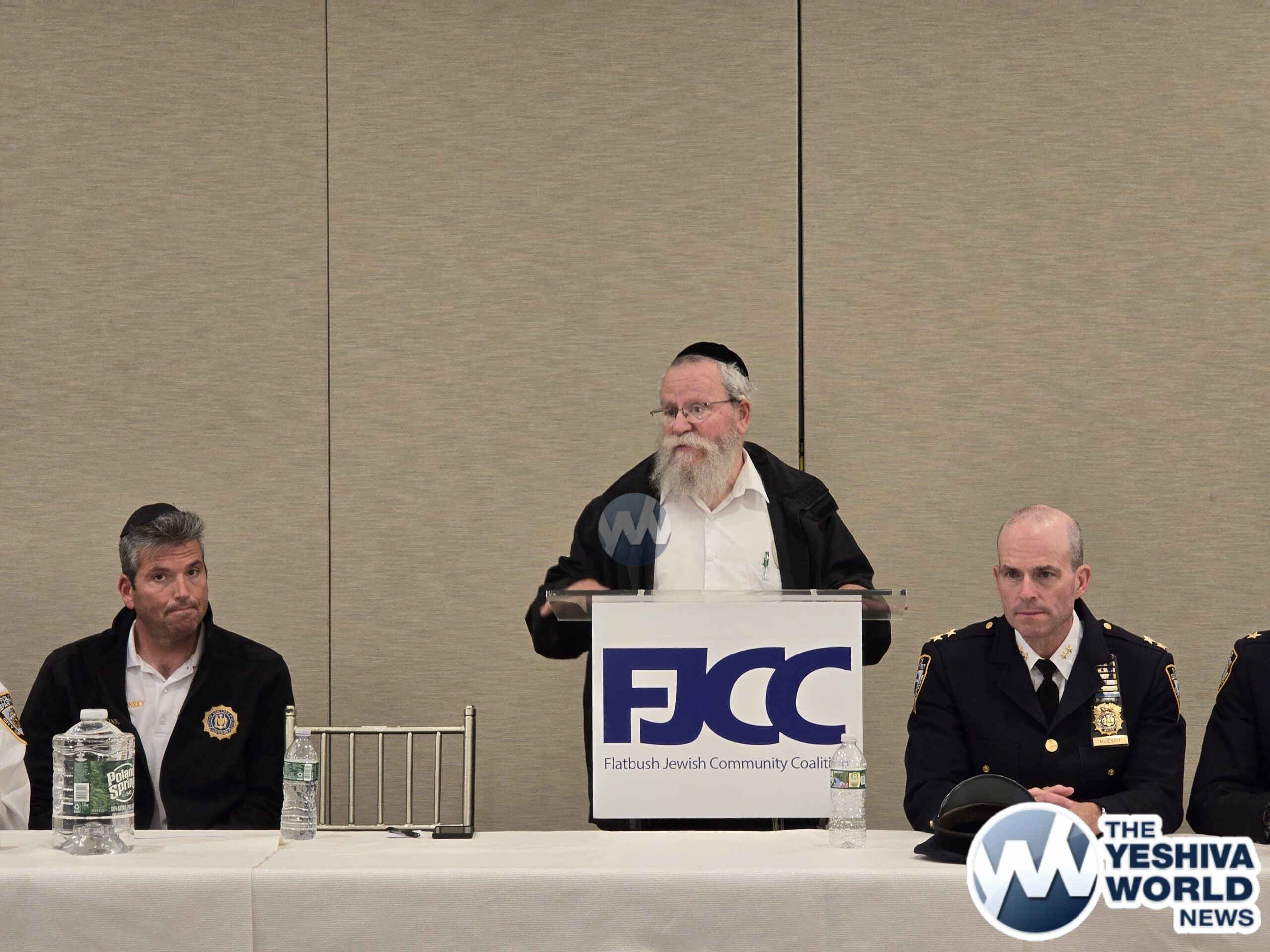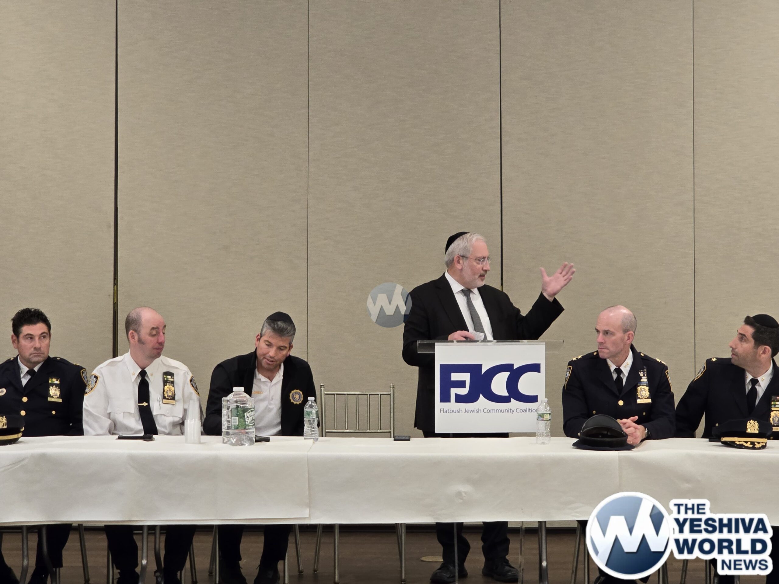 Others who addressed the meeting included Flatbush Shomrim Coordinator Robert Moskovitz, Flatbush Hatzoloh Coordinator Moshe Wulliger, Misaskim President and co-founder Meyer Weill, and the Dean of YDE Rabbi Rephael Netanel.