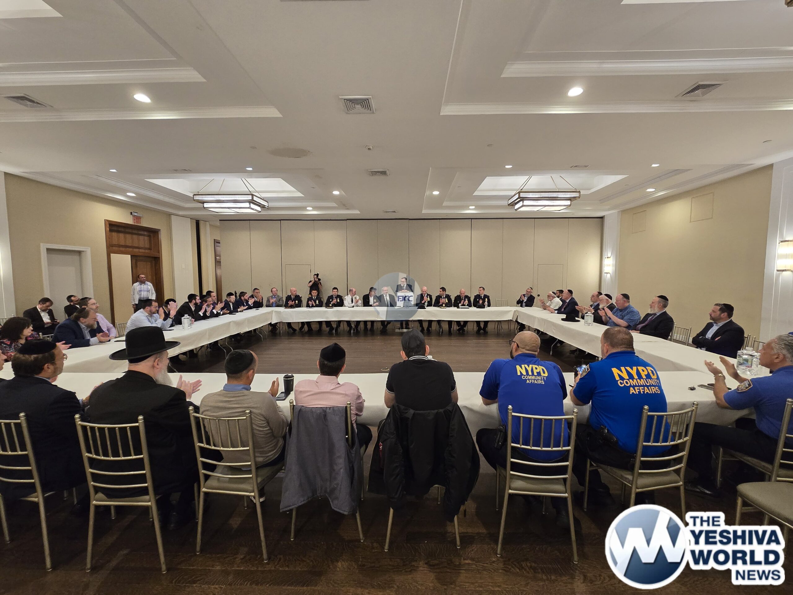 FJCC Executive Board members attending included Peter Rebenwurzel, Tzvi Weill, Eli Goldbaum and Avrumi Schonfeld. Leaders from community organizations, Shuls, Yeshivas and Bais Yaakov schools presented issues of concern. Chief McEvoy thanked the FJCC for coordinating the annual meeting, and stated that the NYPD is prepared with extra patrols for the holidays to ensure the communities safety.