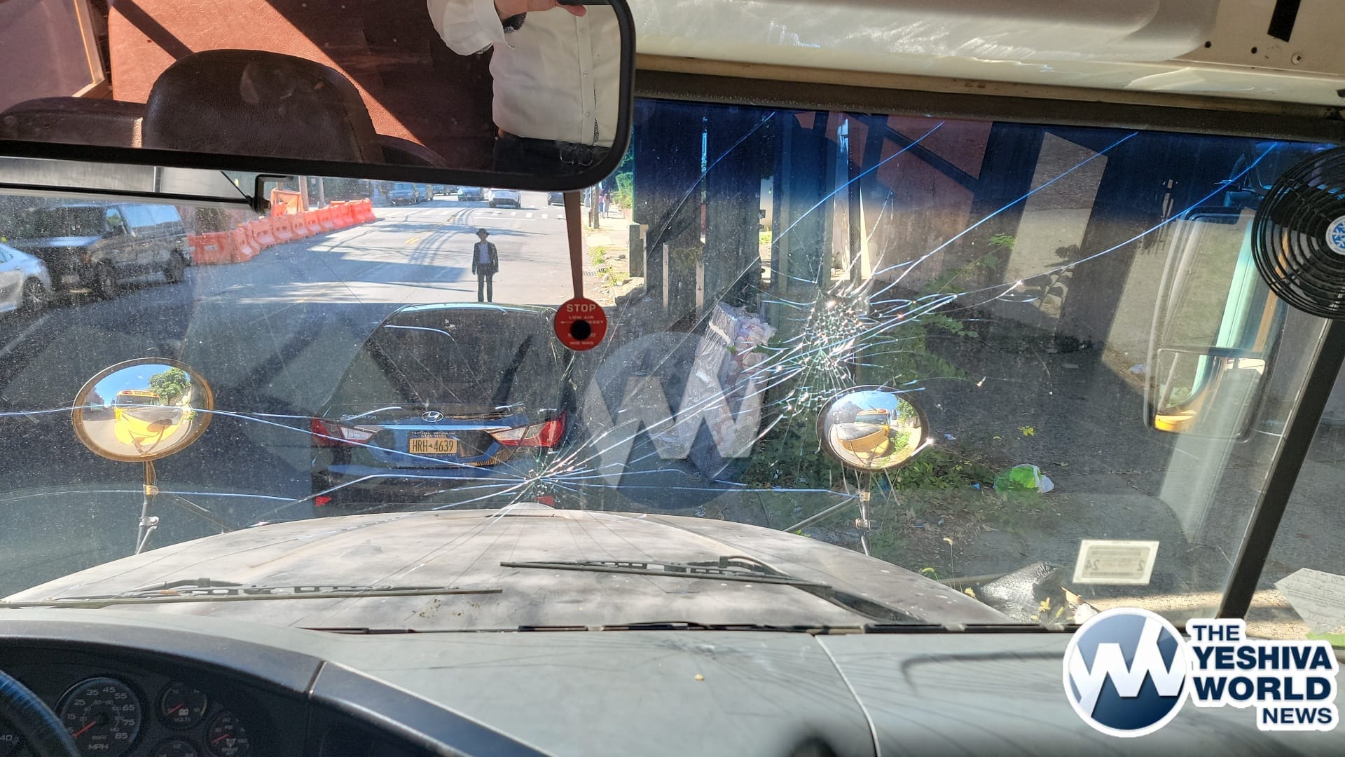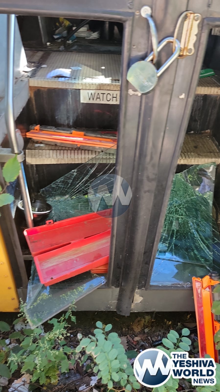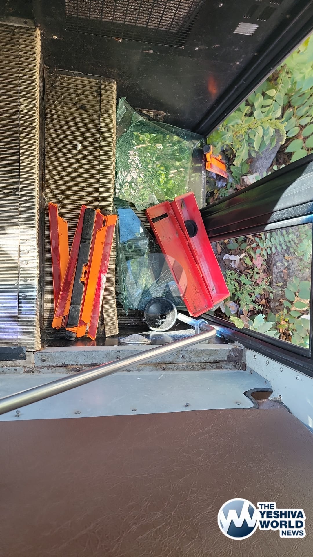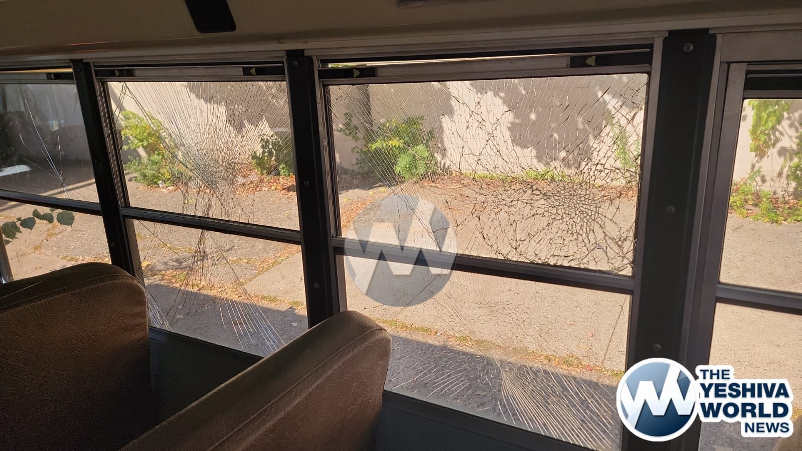 A bus belonging to Kallisher Yeshiva, adorned with Hebrew writing, was severely vandalized in Flatbush over Rosh Hashanah.